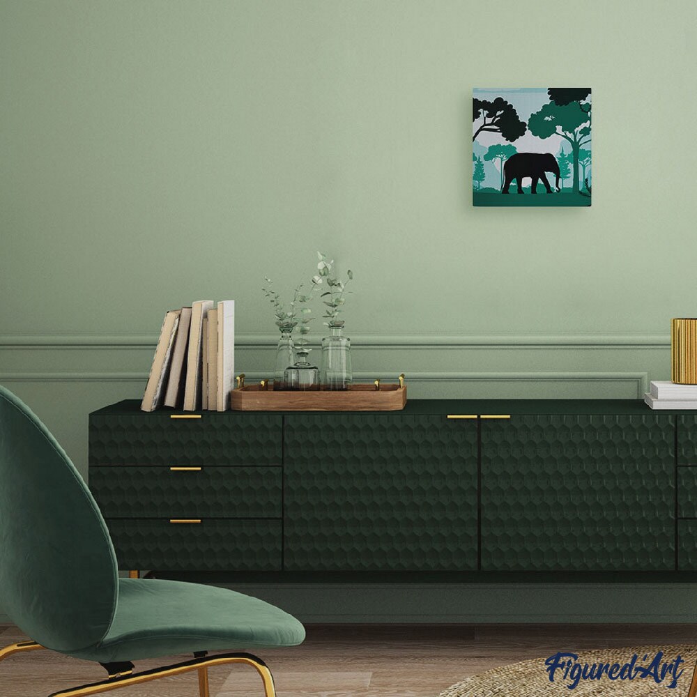 Figured'Art Mini Paint by Numbers Kit for Adults with Frame Elephant in the Forest Small format 8"x8" - Craft Art Painting DIY Canvas Already Stretched on a Wooden Frame