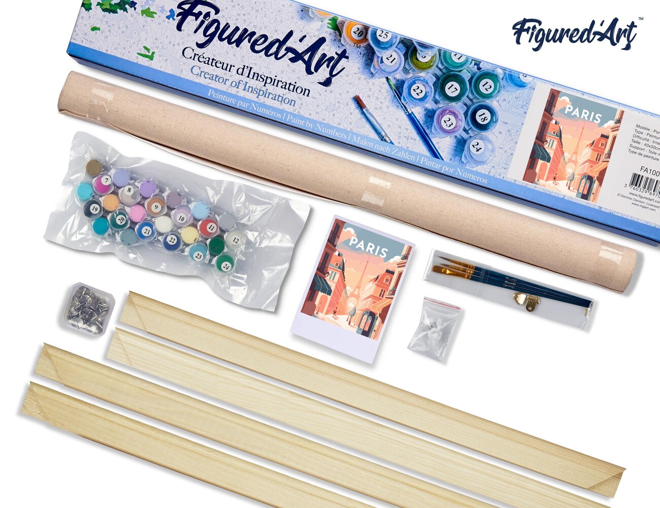 Figured'Art Paint by Number for Adults Travel Poster Paris 16"x20" - Craft Art Painting Rolled Canvas with DIY Wooden Frame