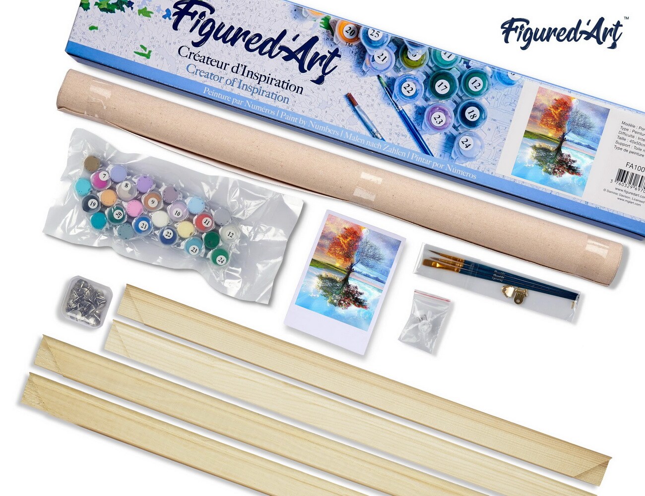 Figured'Art Paint by Numbers for Adults 4 Seasons Tree 16"x20" - Craft Art Painting Rolled Canvas with DIY wooden frame