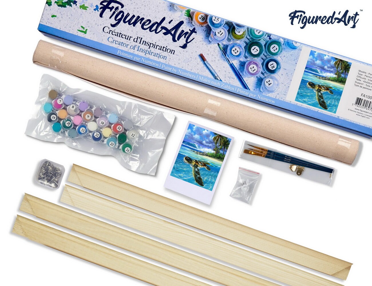 Figured'Art Paint by Numbers for Adults Relaxing Turtle 16"x20" - Craft Art Painting Rolled Canvas with DIY wooden frame