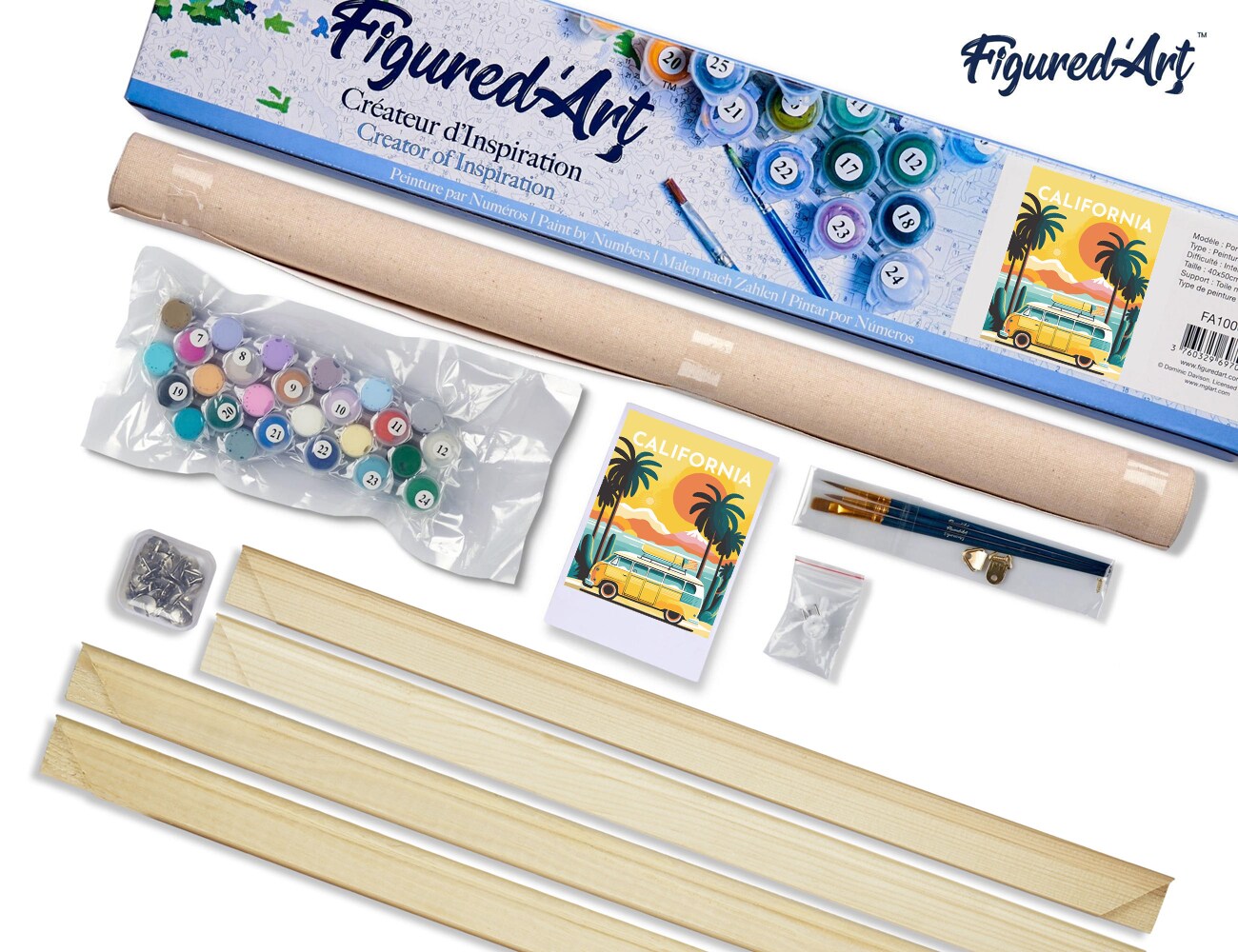 Figured'Art Paint by Numbers for Adults Travel Poster California 16"x20" - Craft Art Painting Rolled Canvas with DIY wooden frame