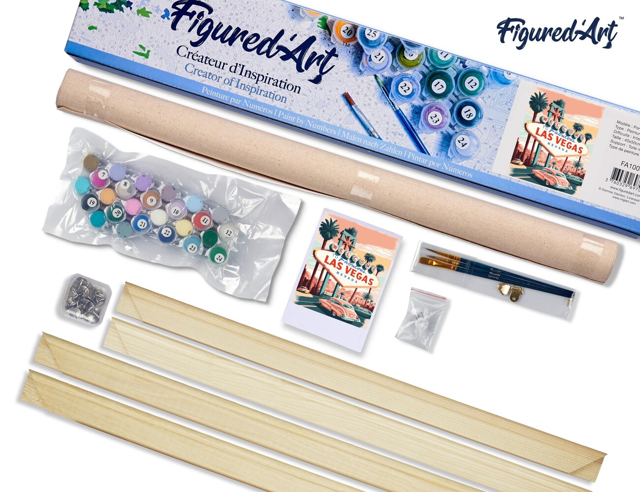 Figured'Art Paint by Numbers for Adults Travel Poster Las Vegas 16"x20" - Craft Art Painting Rolled Canvas with DIY wooden frame