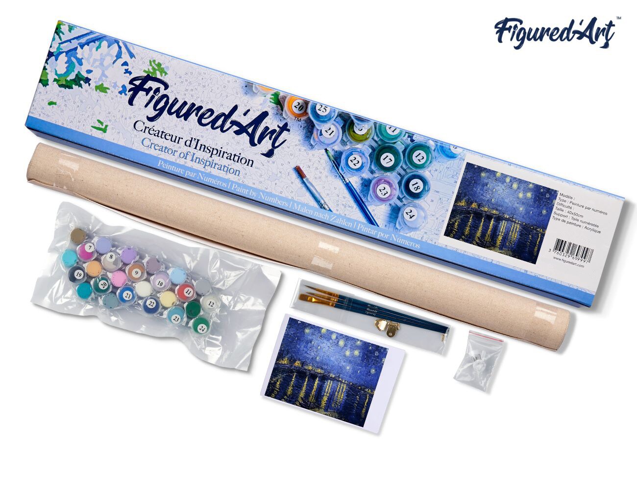 Figured'Art Paint by Numbers for Adults Van Gogh Starry Night over the Rhone 16"x20" - Craft Art Painting DIY Kit Rolled Canvas without frame
