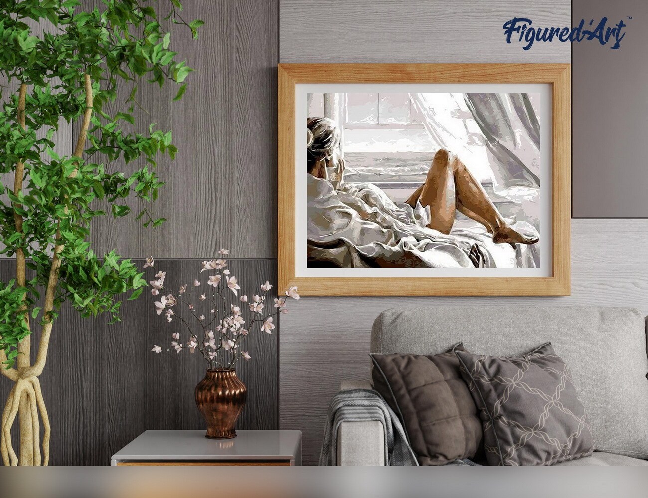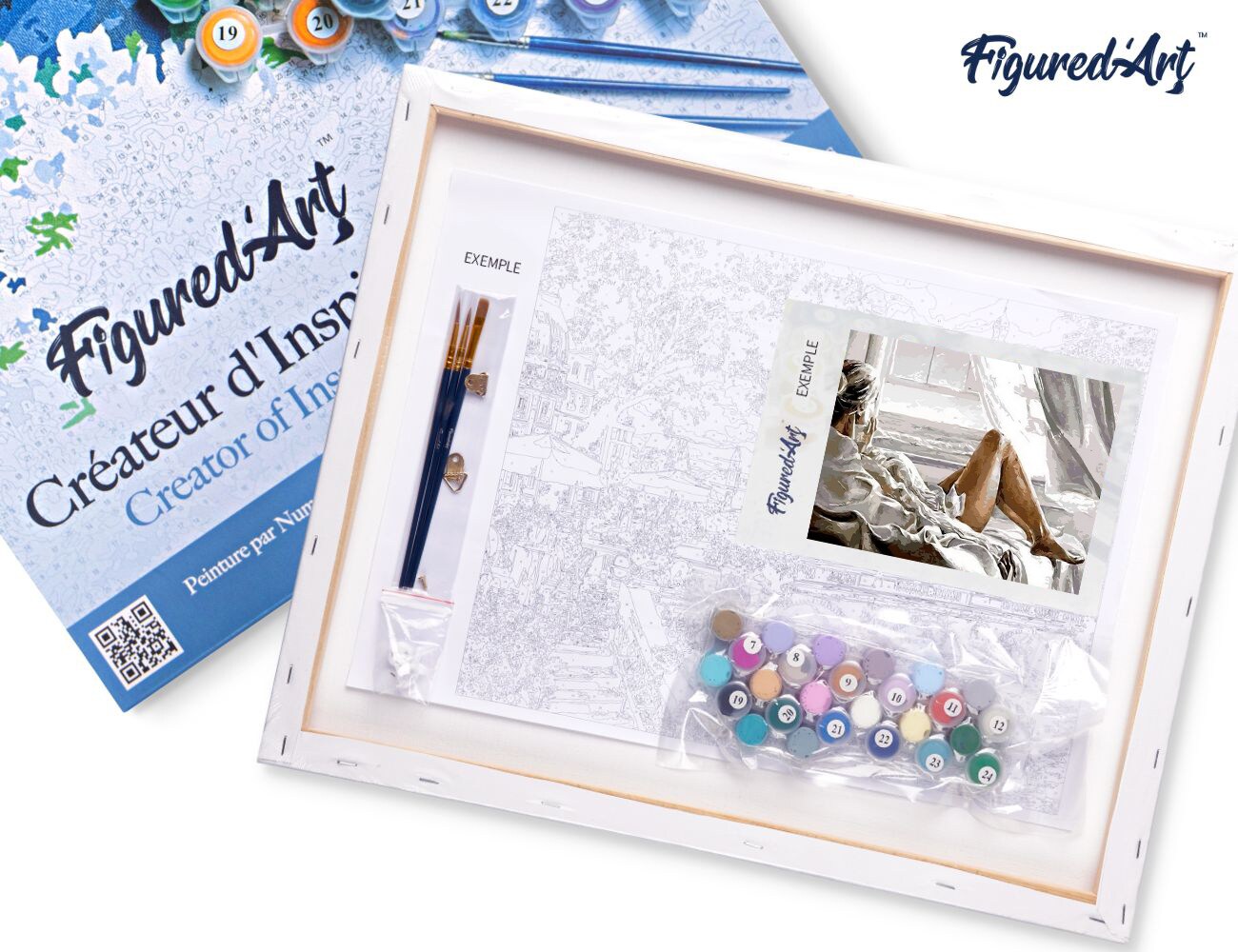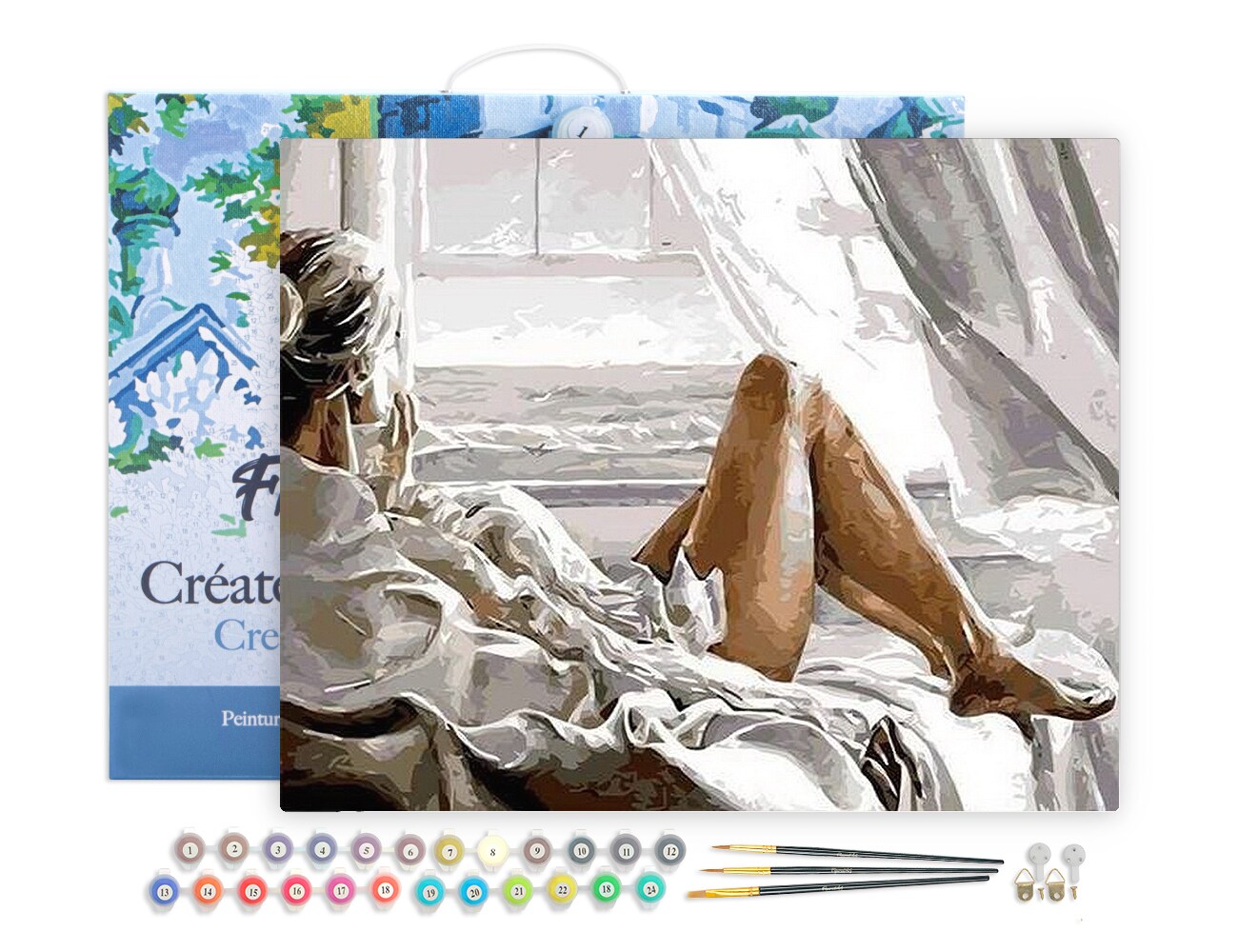 Figured'Art Paint by Numbers for Adults with Frame Rest facing the Sea 16"x20" - Craft Art Painting DIY Kit Canvas Already Stretched on a Wooden Frame
