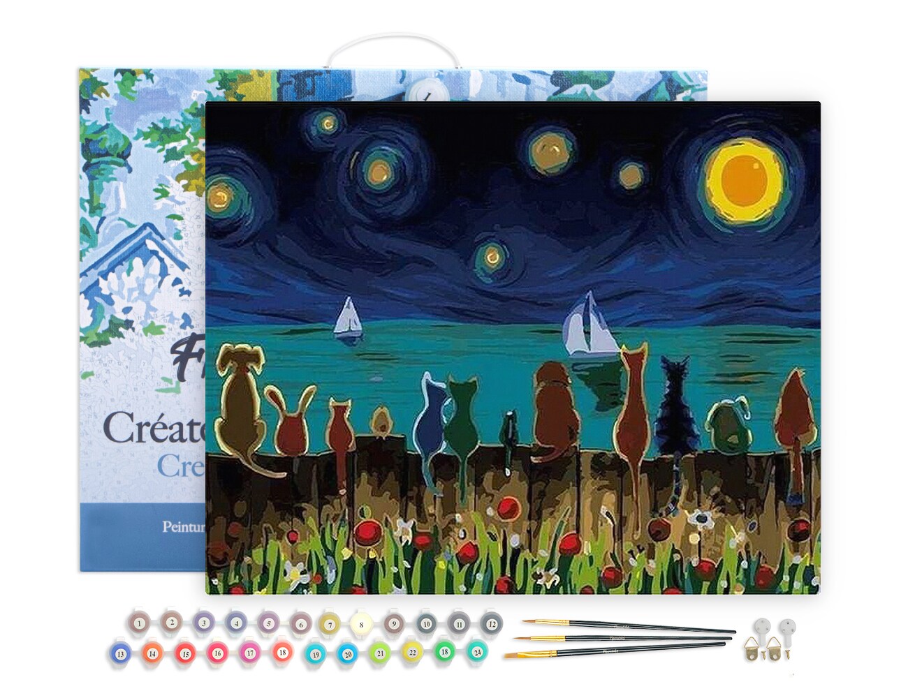 Figured'Art Paint by Numbers for Adults with Frame Starry Night with Animals 16"x20" - Craft Art Painting DIY Kit Canvas Already Stretched on a Wooden Frame