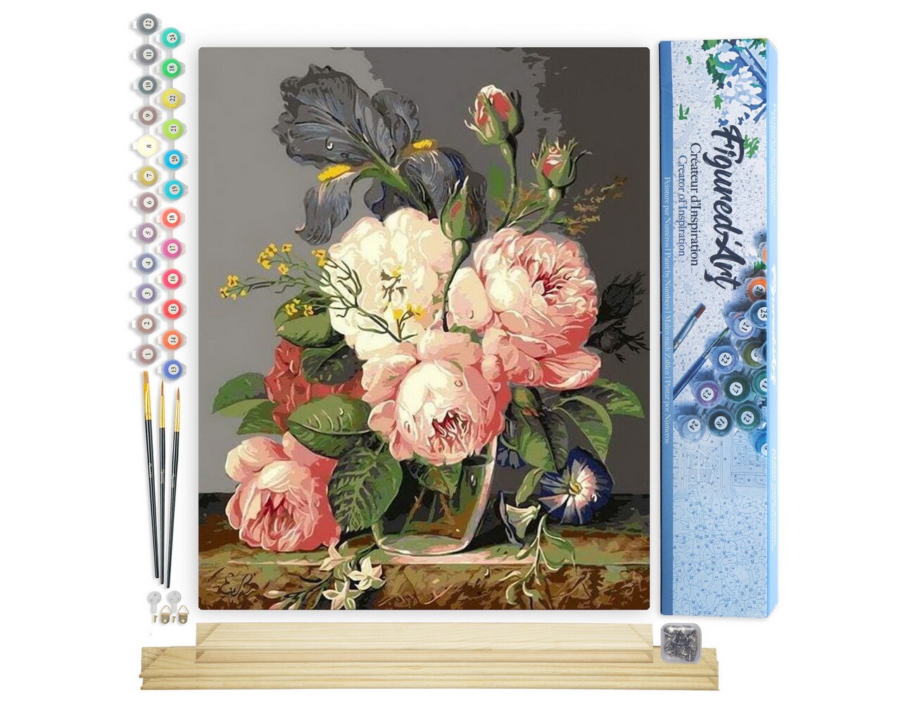 Figured'Art Paint by Numbers Kit for Adults Bouquet of Wild Flowers 16"x20" - Craft Art Painting Rolled Canvas with DIY wooden frame