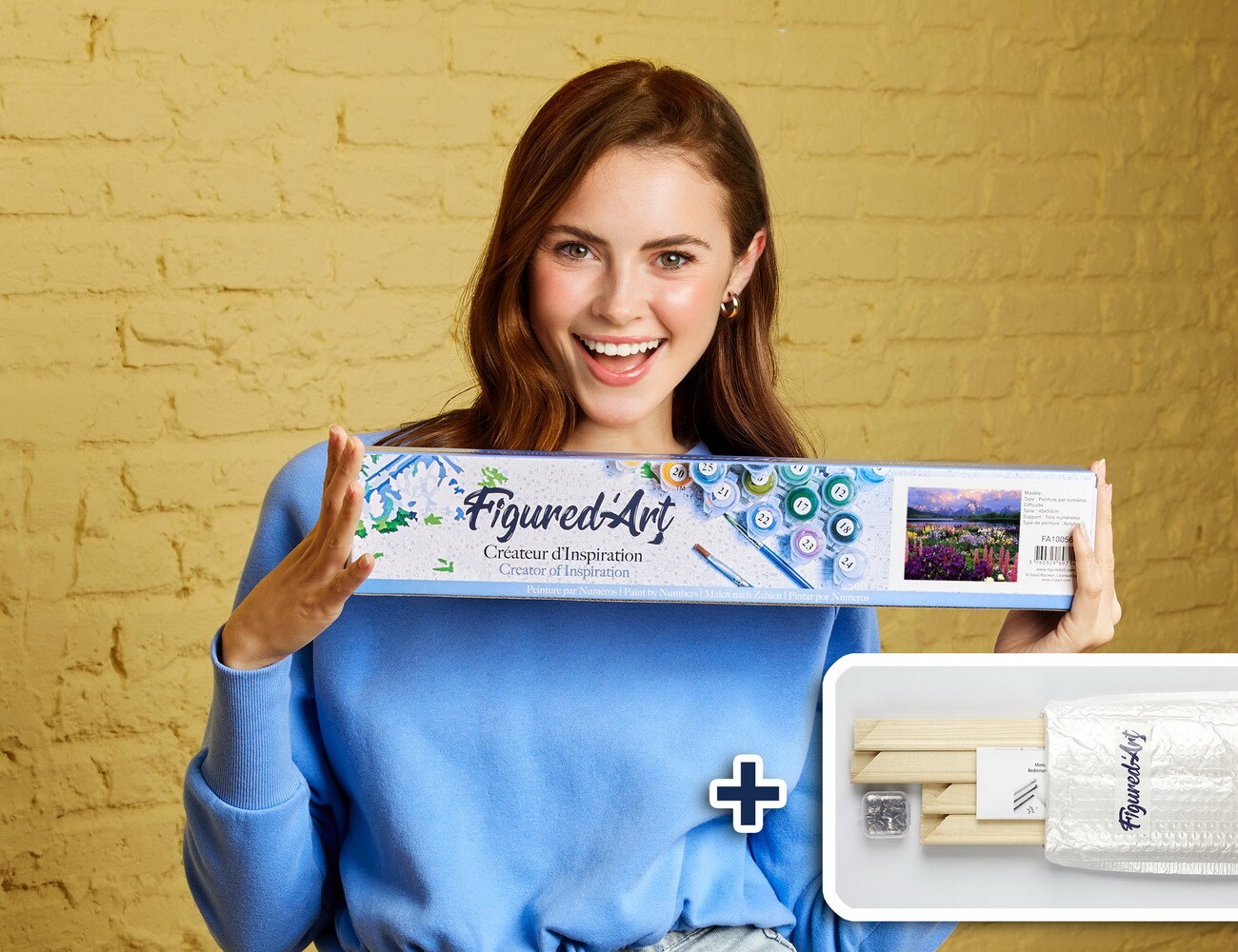 Figured'Art Paint by Numbers Kit for Adults Flowers and Lake near the Mountain 16"x20" - Craft Art Painting Rolled Canvas with DIY wooden frame