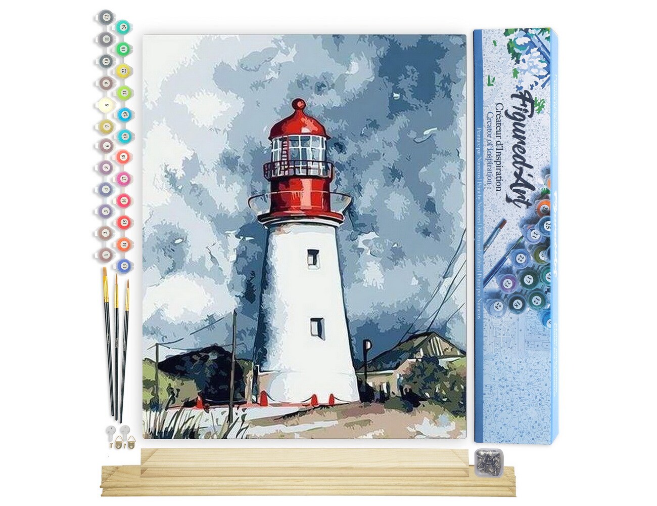 Figured'Art Paint by Numbers Kit for Adults Lighthouse under a Cloudy Sky 16"x20" - Craft Art Painting Rolled Canvas with DIY wooden frame
