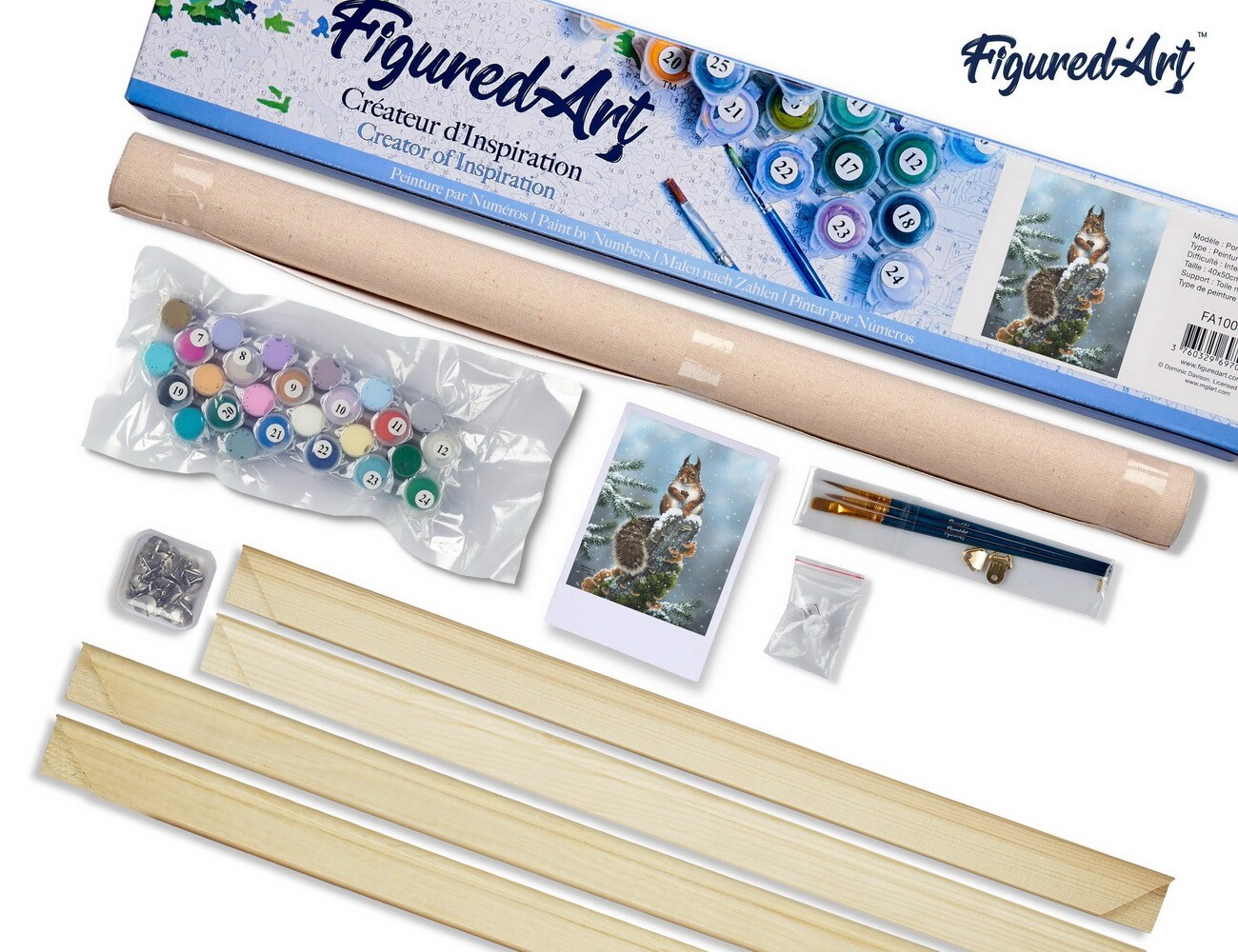Figured'Art Paint by Numbers Kit for Adults Perched Squirrel 16"x20" - Craft Art Painting Rolled Canvas with DIY wooden frame