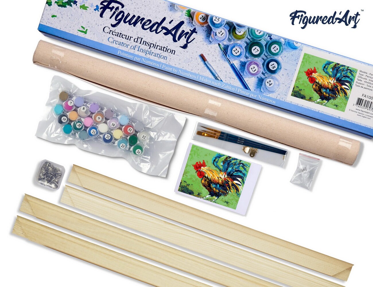 Figured'Art Paint by Numbers Kit for Adults Rooster 16"x20" - Craft Art Painting Rolled Canvas with DIY wooden frame
