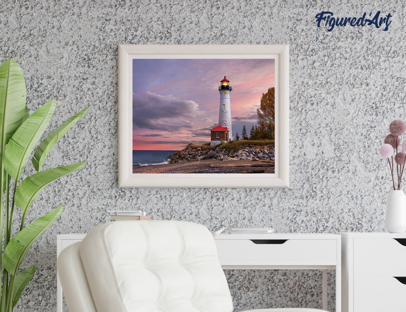 Figured'Art Paint by Numbers Kit for Adults Sea Lighthouse 16"x20" - Craft Art Painting Rolled Canvas with DIY wooden frame