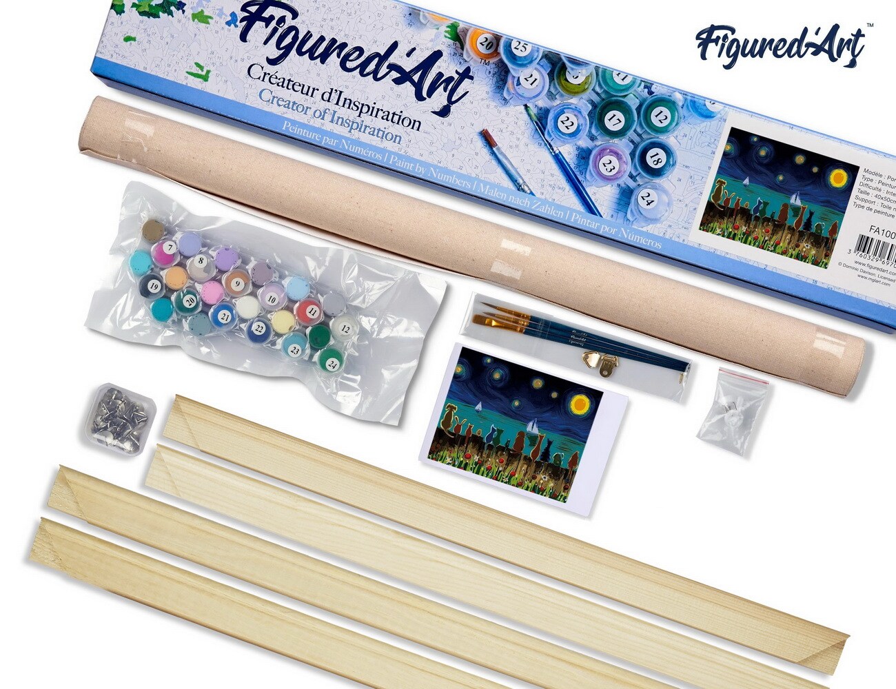 Figured'Art Paint by Numbers Kit for Adults Starry Night with Animals 16"x20" - Craft Art Painting Rolled Canvas with DIY wooden frame