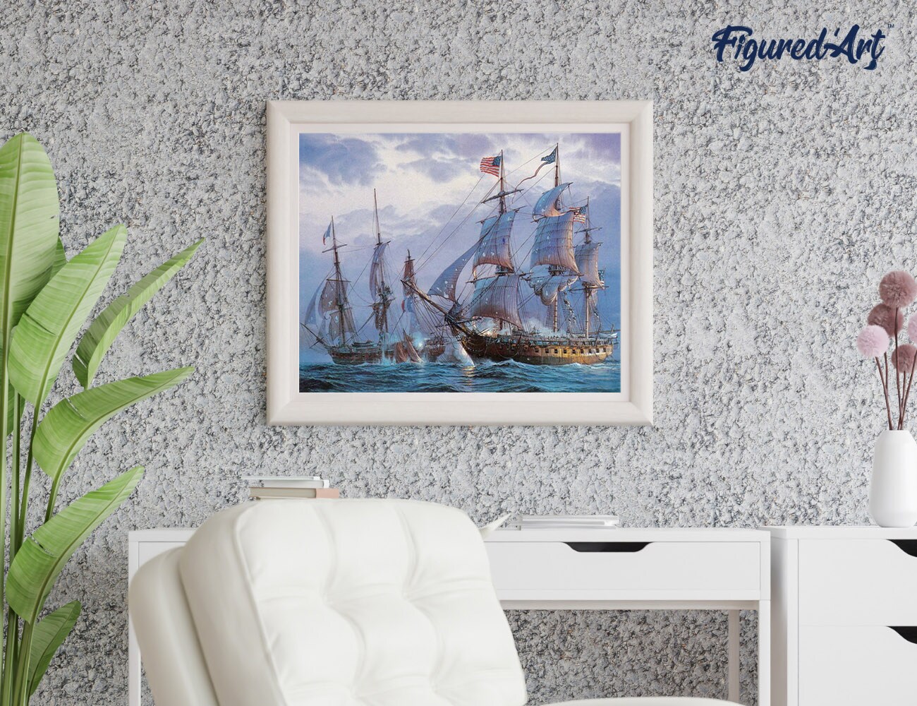 Figured'Art Paint by Numbers Kit for Adults The American Fleet 16"x20" - Craft Art Painting DIY Kit Rolled Canvas without frame
