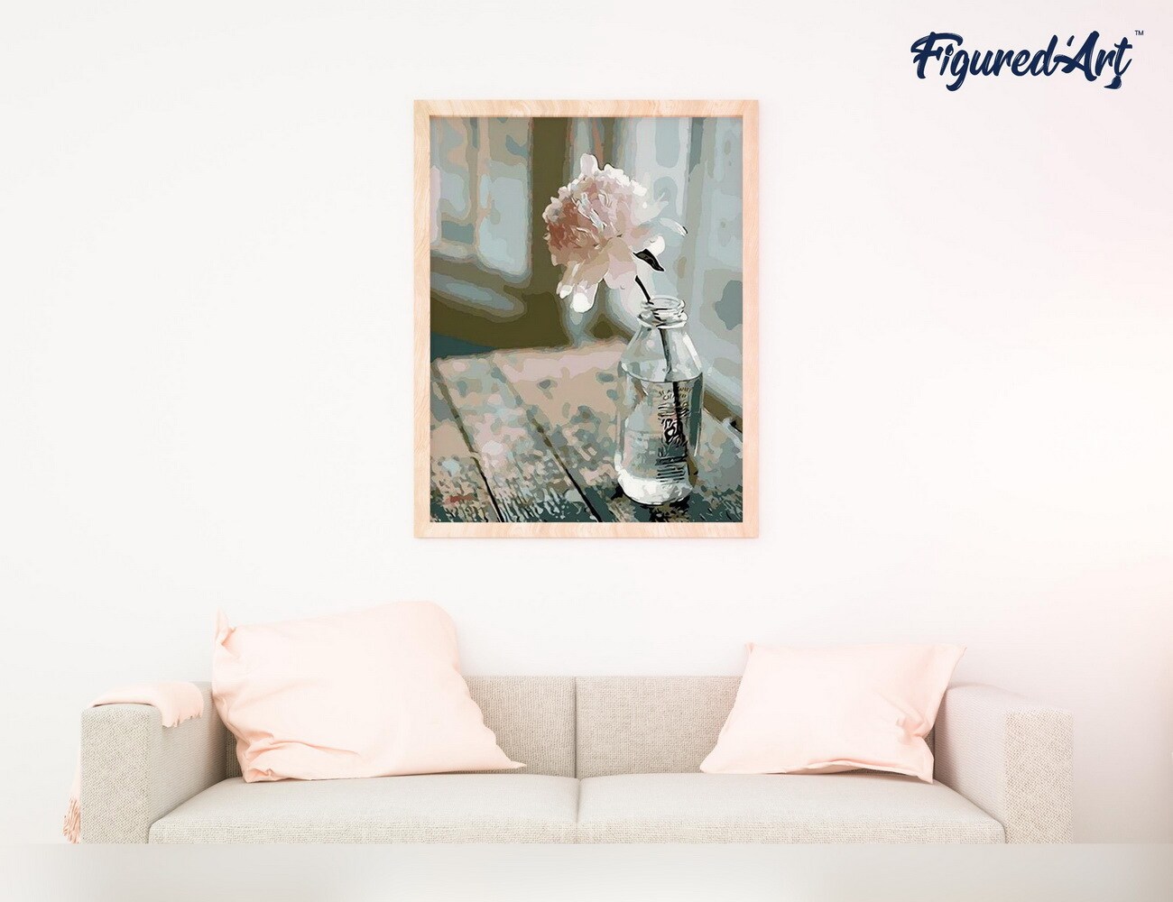 Figured'Art Paint by Numbers Kit for Adults White Flower 16"x20" - Craft Art Painting Rolled Canvas with DIY wooden frame
