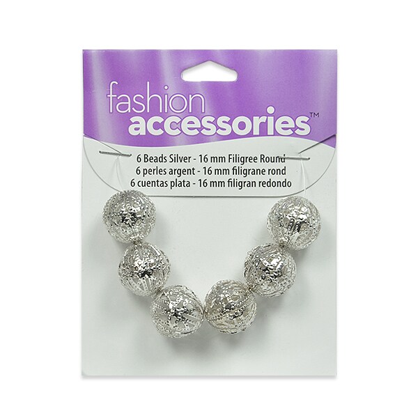 Filigree Metal 16mm Beads Silver Pack of 6