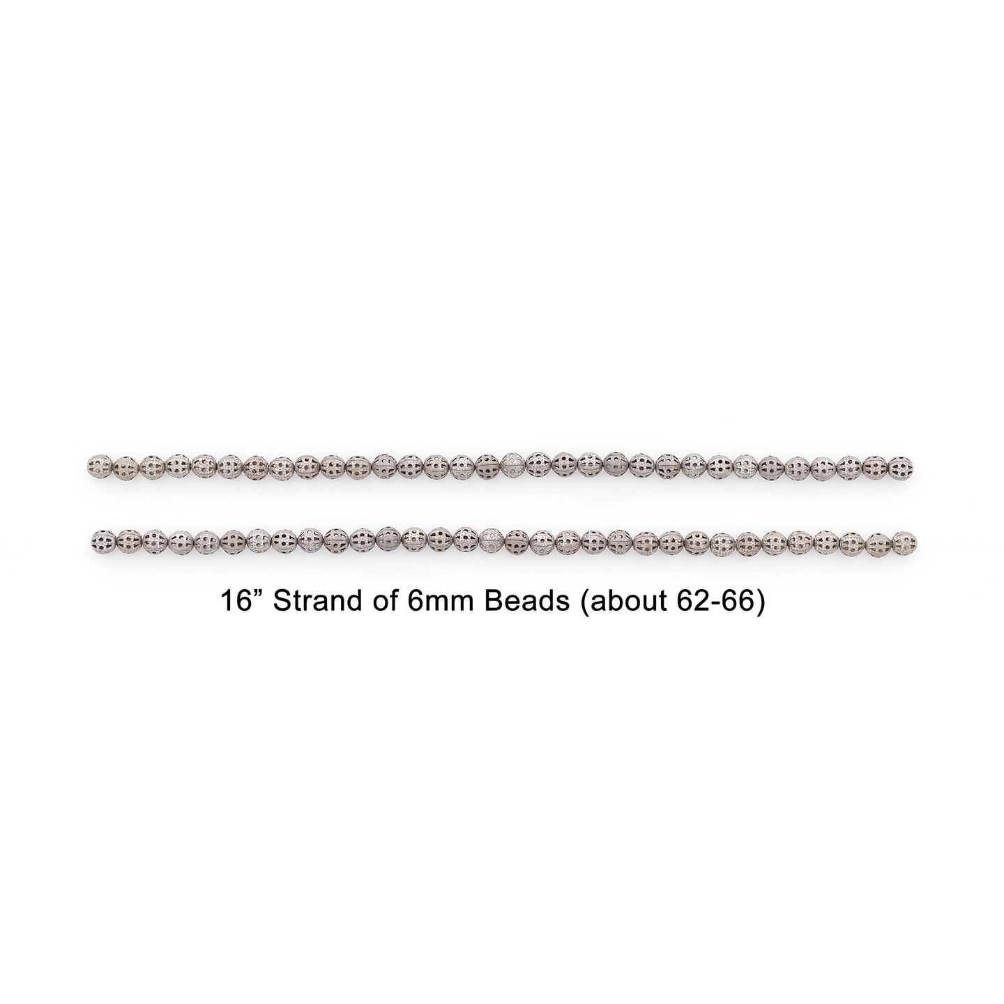 Filigree Metal 6mm Round Beads 16"Strand (62-66 pcs) - Antique Silver