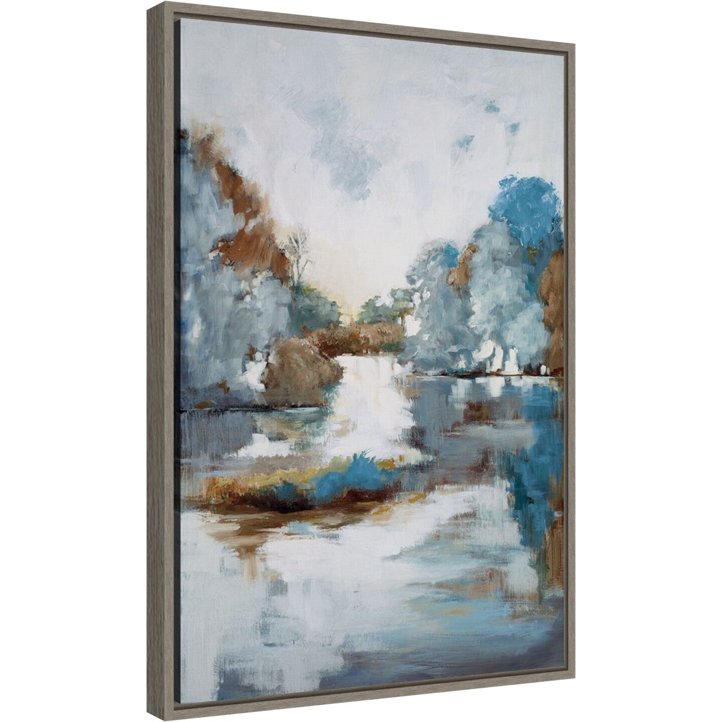 Finding Center Forest Creek by Mary Parker Buckley 16-in. W x 23-in. H. Canvas Wall Art Print Framed in Grey