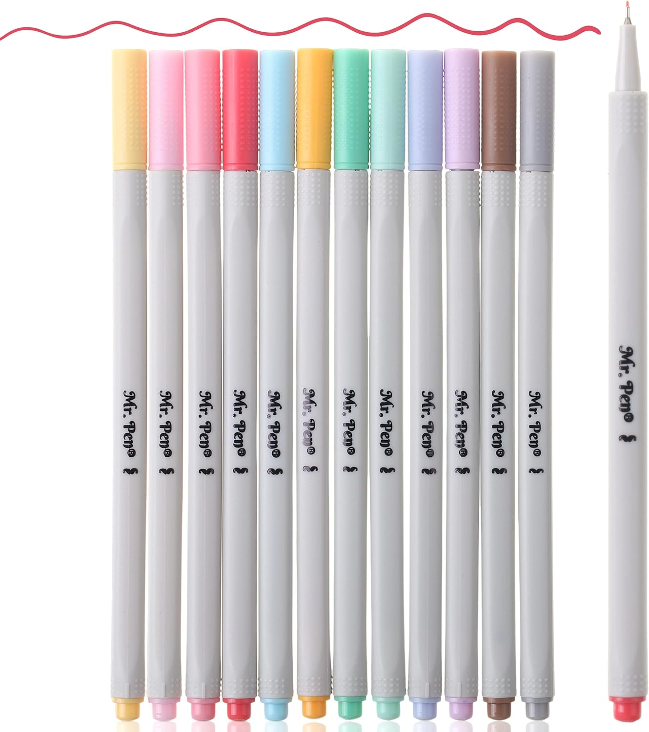 Fineliner Pastel Pens, 12 Pack, Pastel Colors, No Bleed Fine Point Pen, No Smudge Fine Tip Markers, Bible / Journal Pens, Drawing / Note Taking Pen