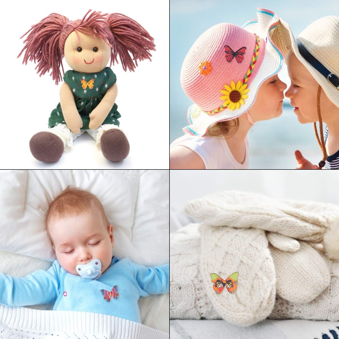 FINGOOO 100 PCS Butterfly Wooden Buttons,1 Inch Colorful 2 Holes Mixed Decorative Buttons for DIY Sewing&Wood Craft Clothes Accessories