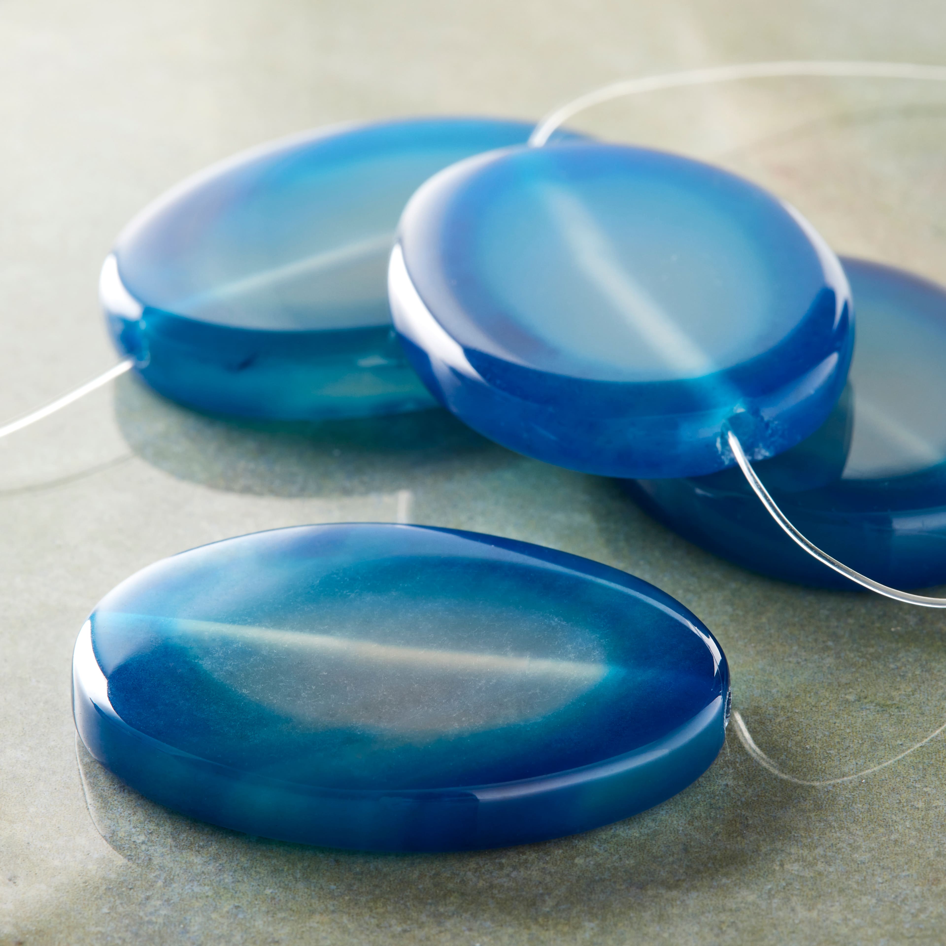 Fire Blue Agate Oval Beads, 40mm by Bead Landing™