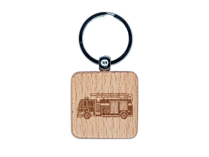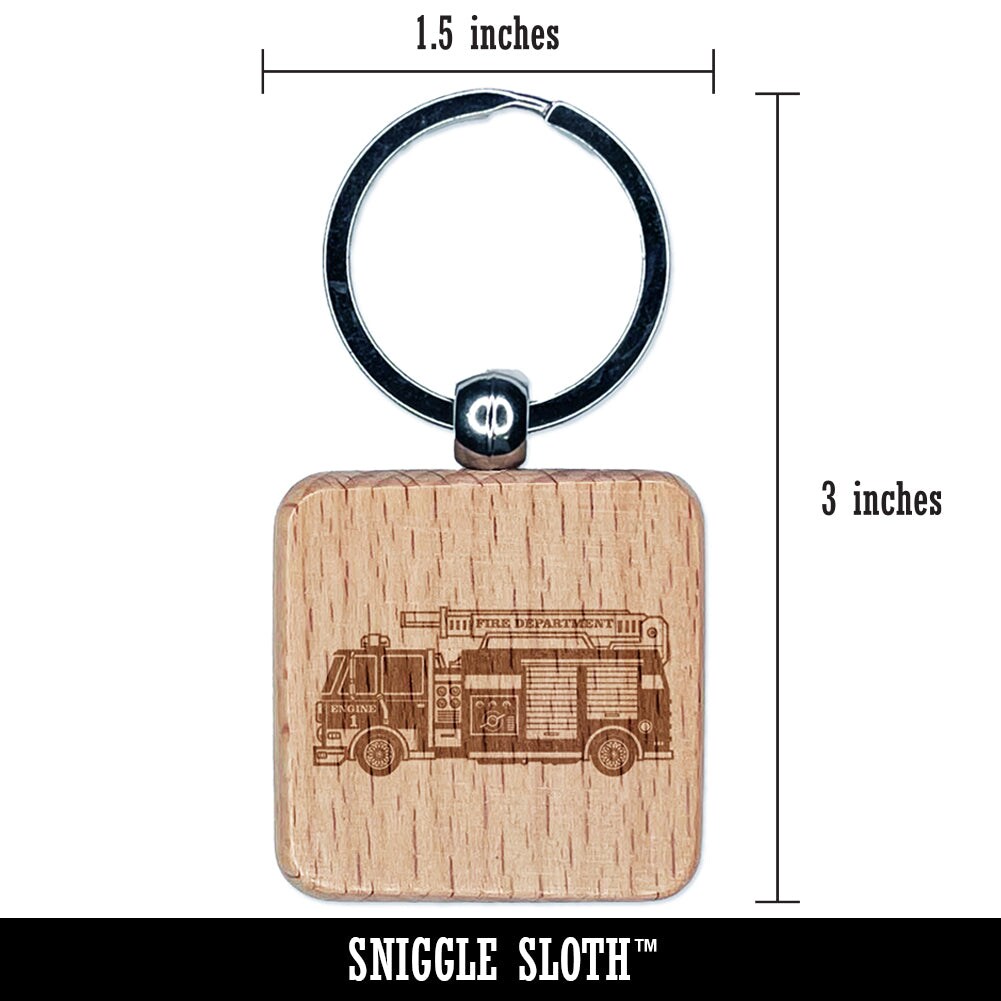 Firetruck Firefighter Safety First Responder Fire Department Vehicle Engraved Wood Square Keychain Tag Charm