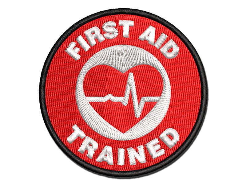 First Aid Trained EKG Heart Multi-Color Embroidered Iron-On or Hook & Loop Patch Applique