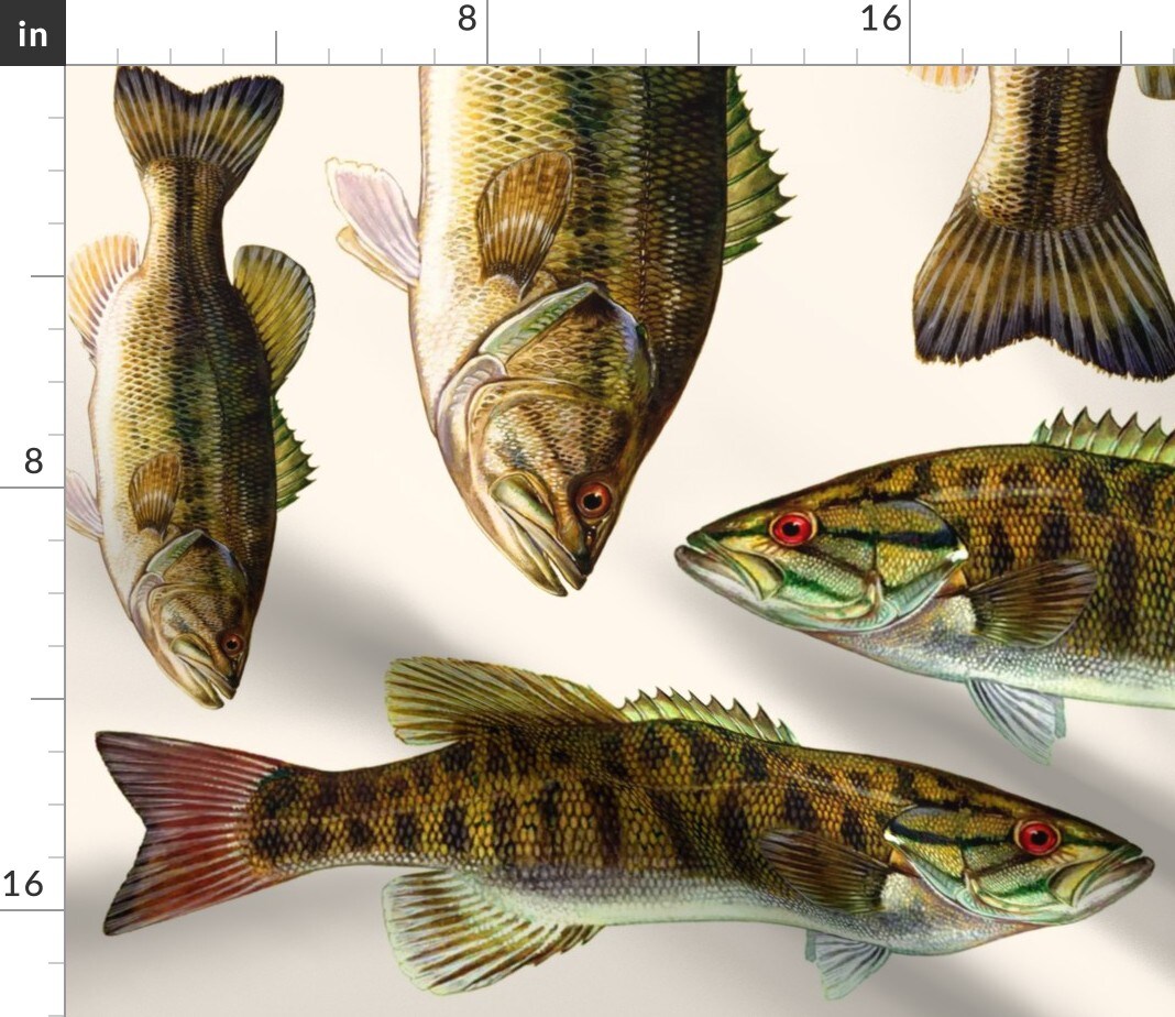 Fish Bass Animal Fishing Custom Printed Fabric by Spoonflower Various Fabrics by the Yard or Fat Quarter