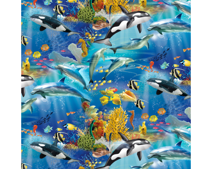 Fish Dolphins Whales Marine Life Digital Cotton Print Fabric | By the Yard | Sewing and Crafting | 44 inches wide