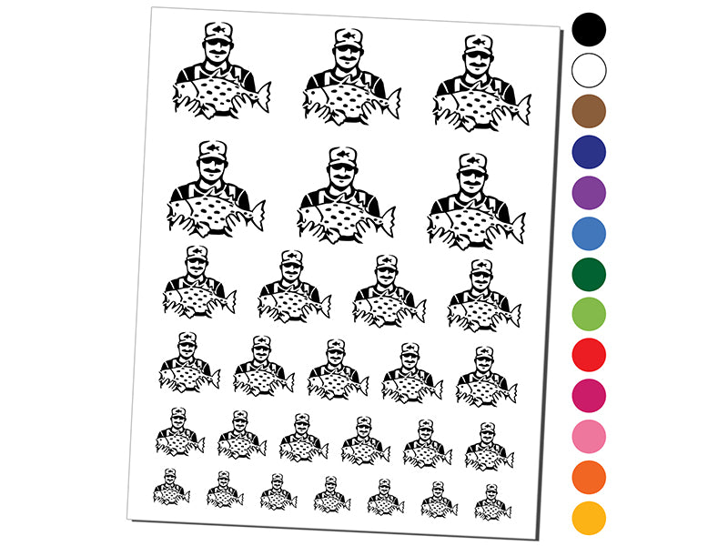 Fisherman Holding Fish Catch Temporary Tattoo Water Resistant Fake Body Art Set Collection