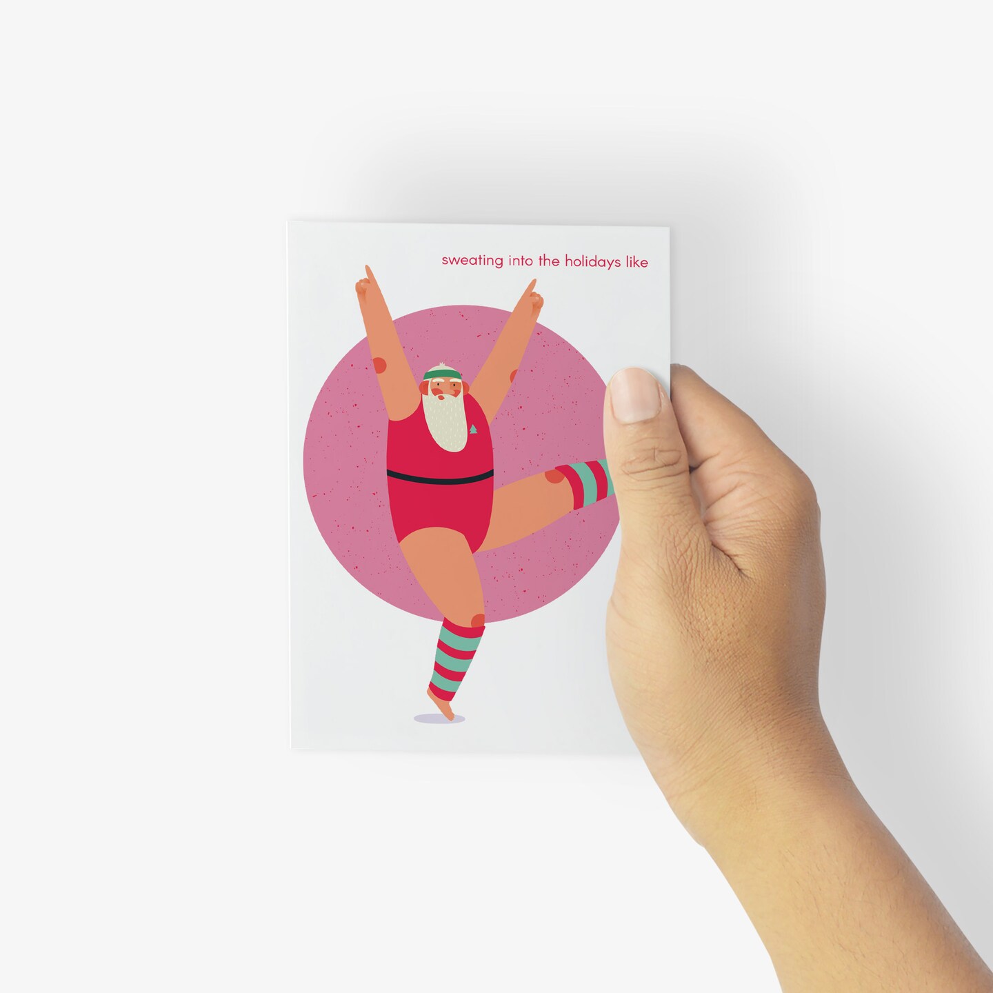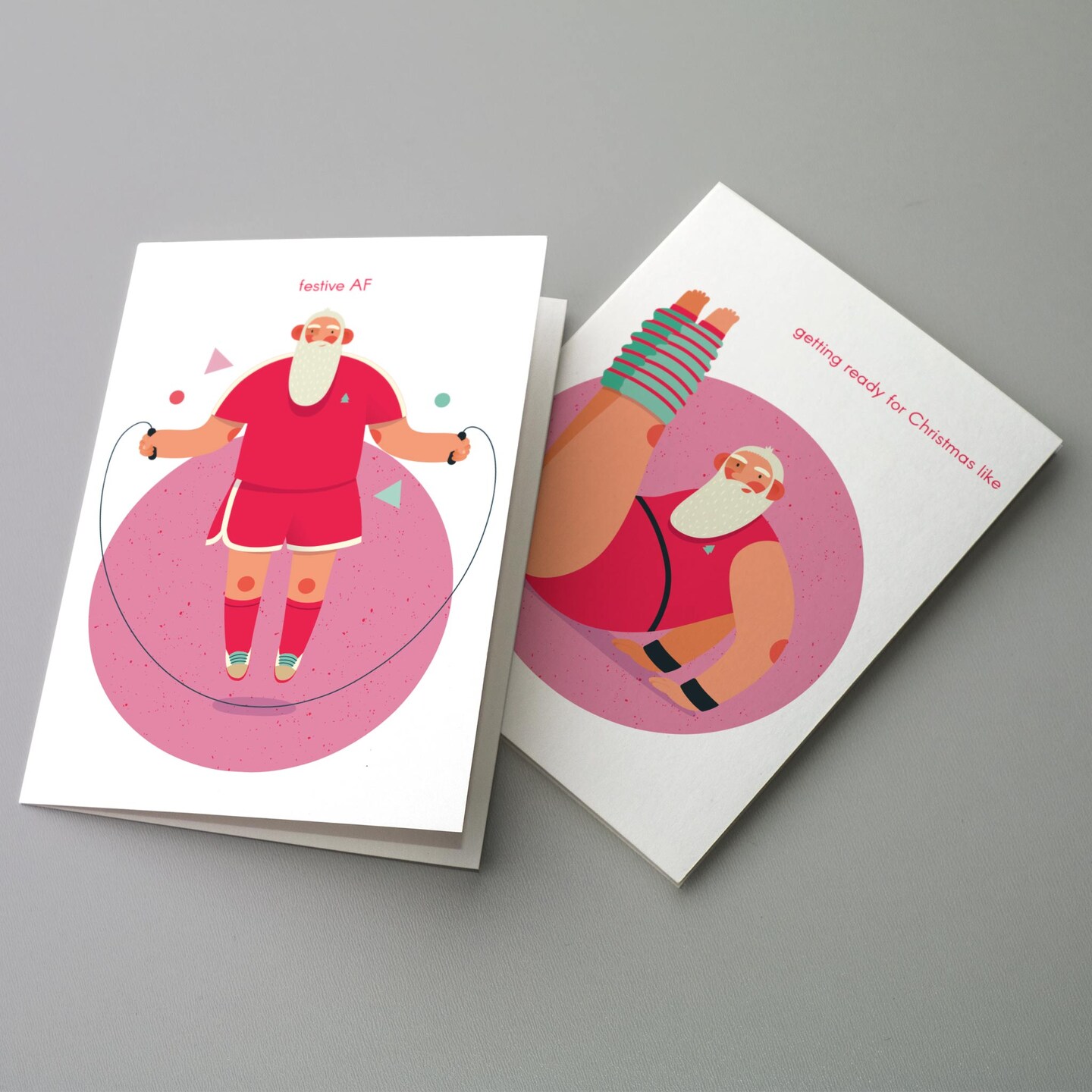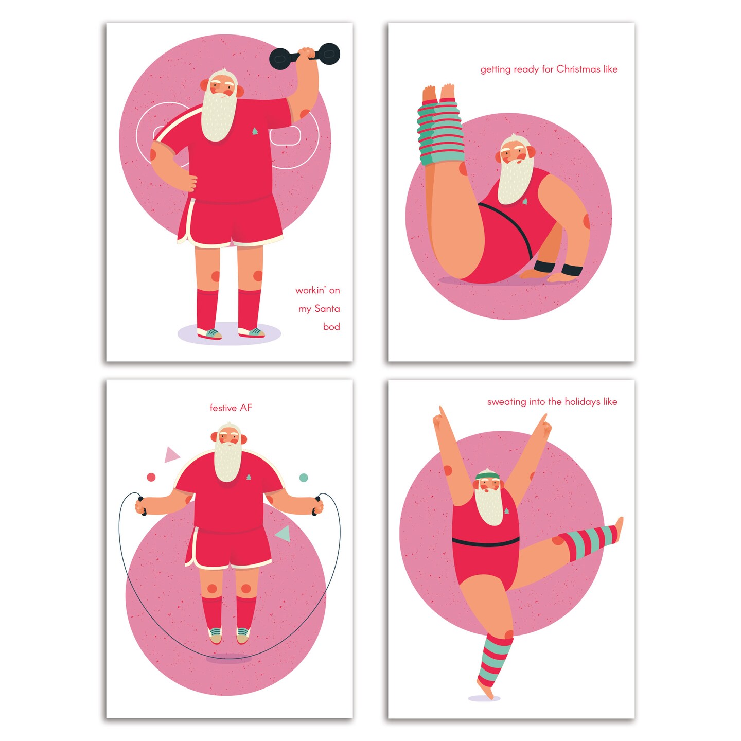 Fitness Santa Christmas Cards - 24-Pack Holiday Greeting Cards with 4 Funny Workout Santa Designs, Perfect for Sharing Merry Christmas & Holiday Wishes with a Playful Twist, Blank Inside for Personalized Messages - Fun and Festive Stationery Set