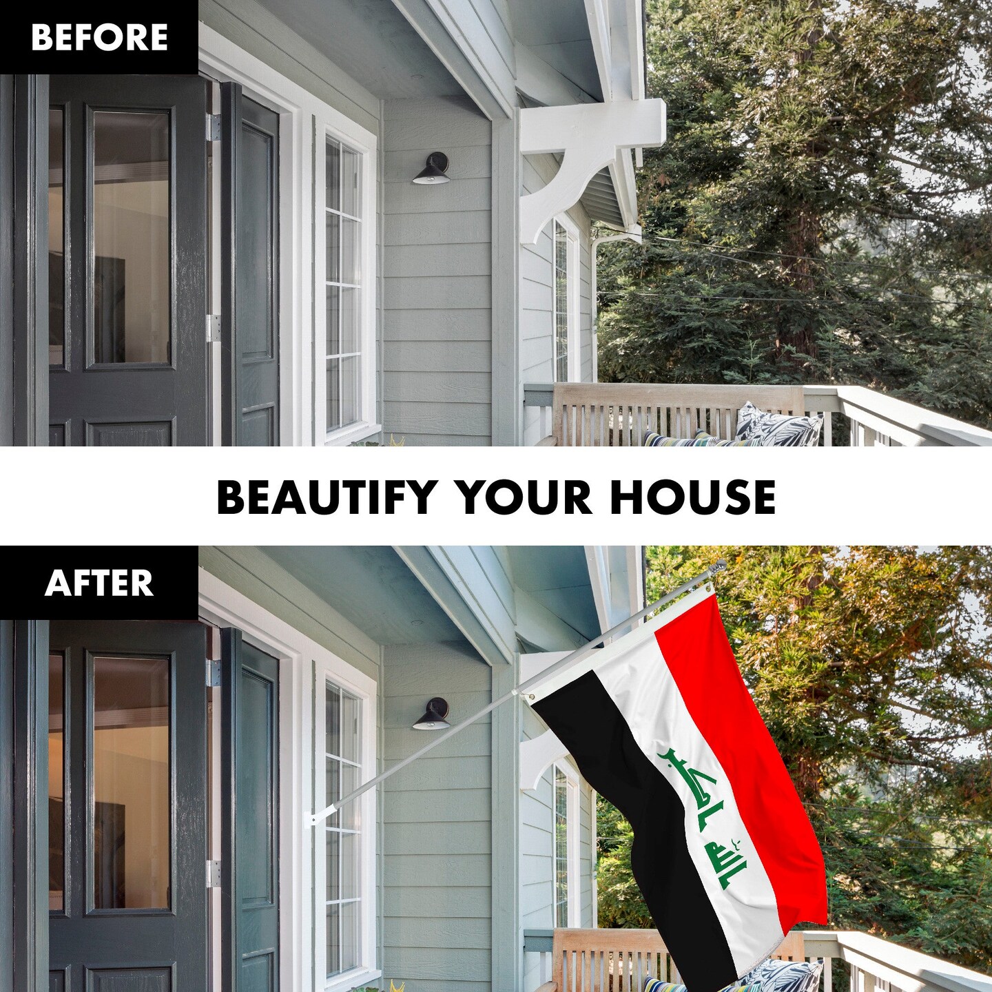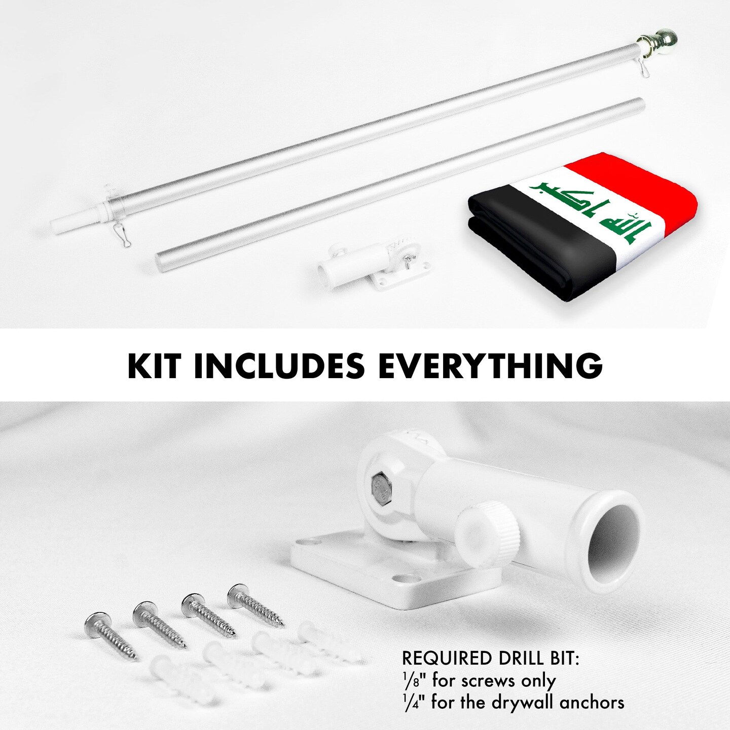 Flag Pole 6FT Silver Tangle Free & Iraq Iraqi Flag 3x5 Ft Combo Printed 150D Polyester By G128