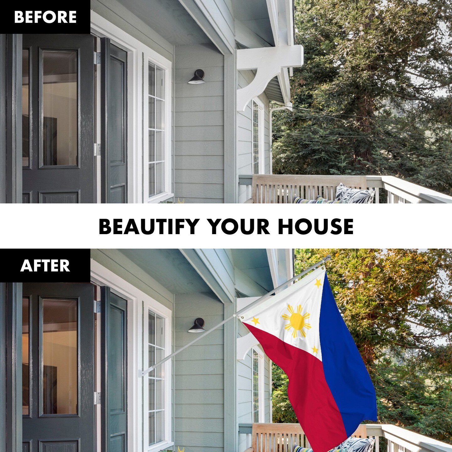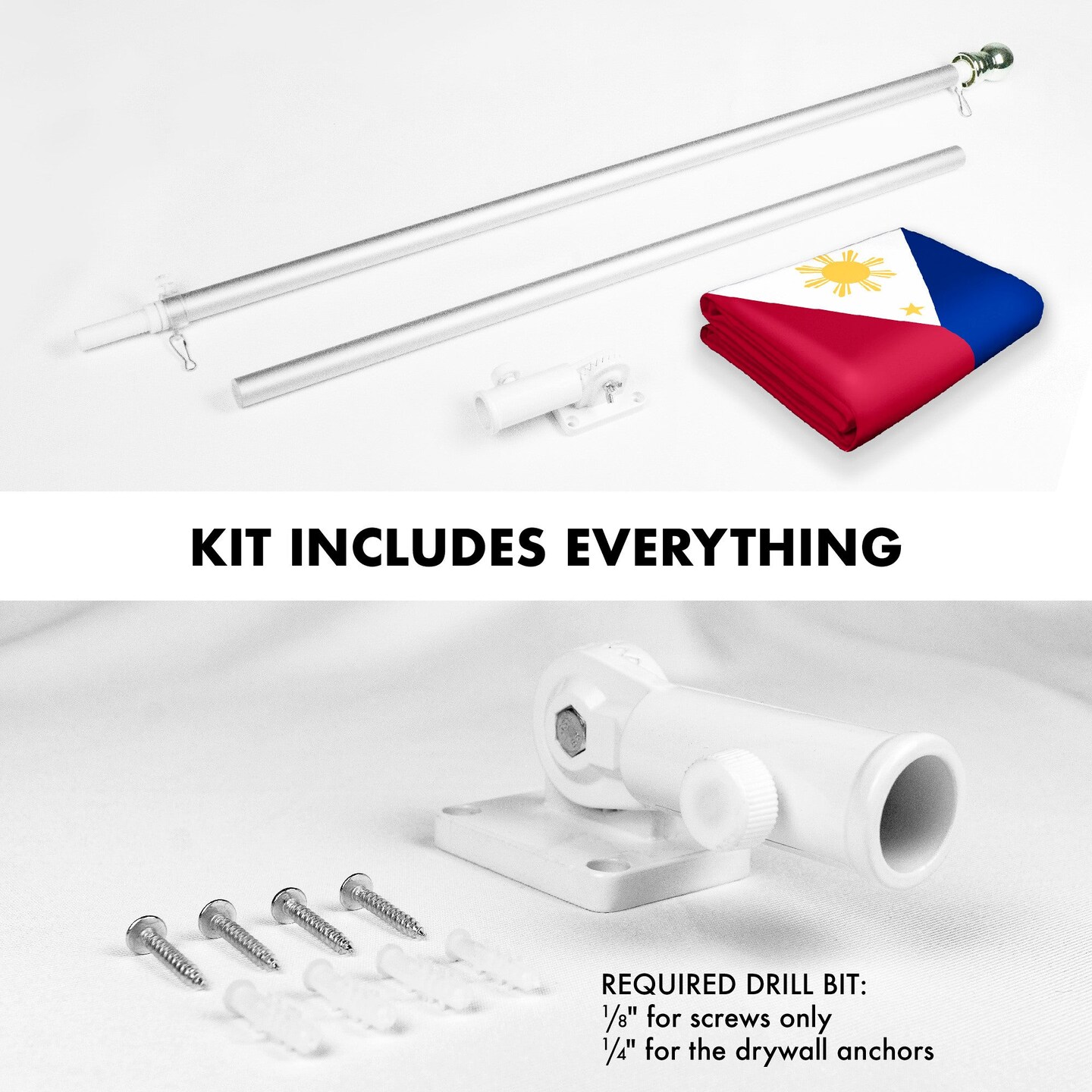 Flag Pole 6FT Silver Tangle Free & Philippines Philippine Flag 3x5 Ft Combo Printed 150D Polyester By G128