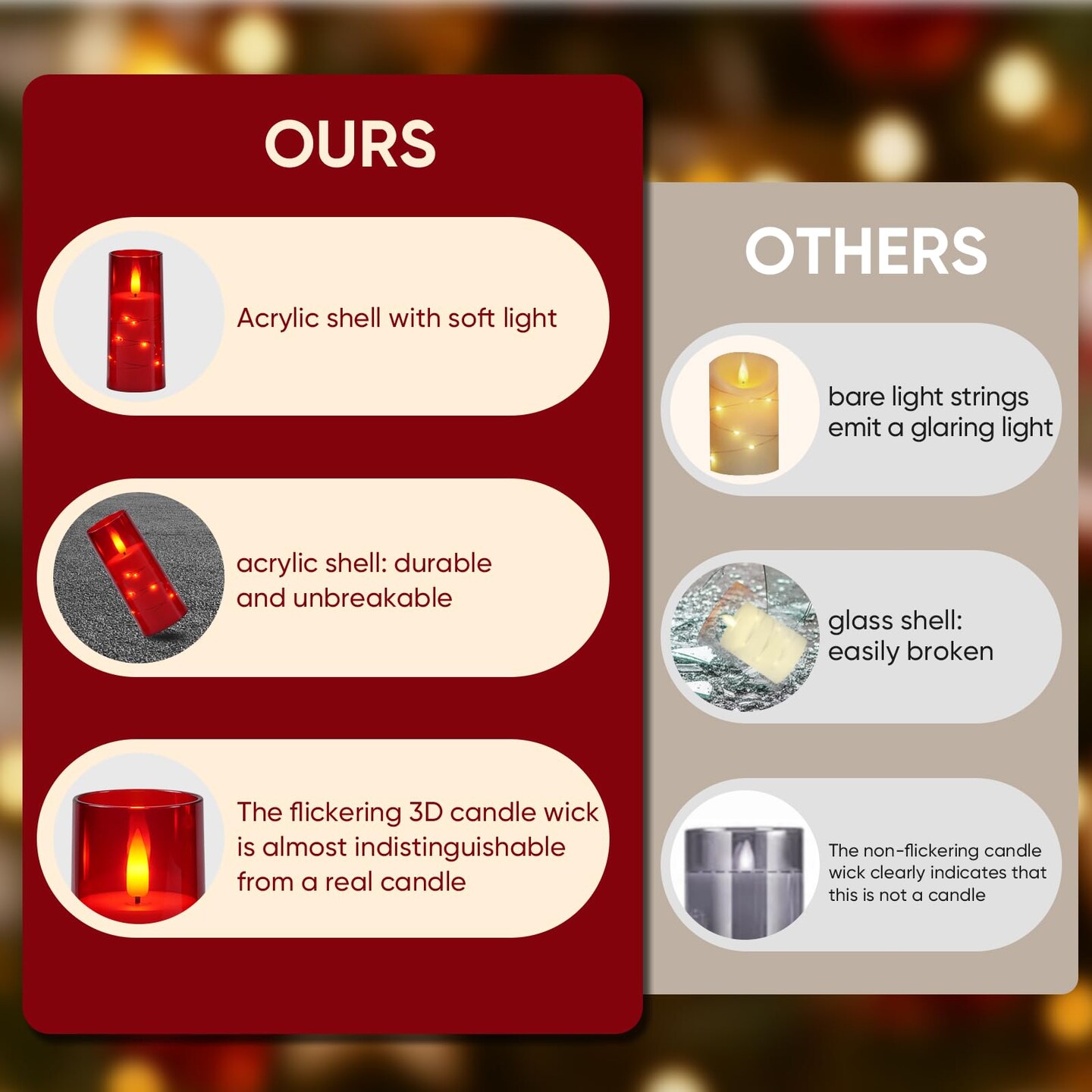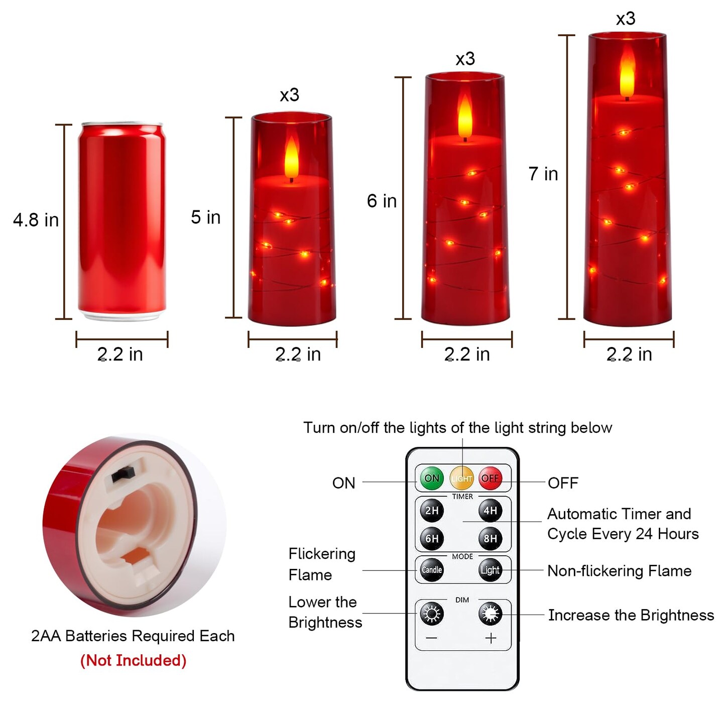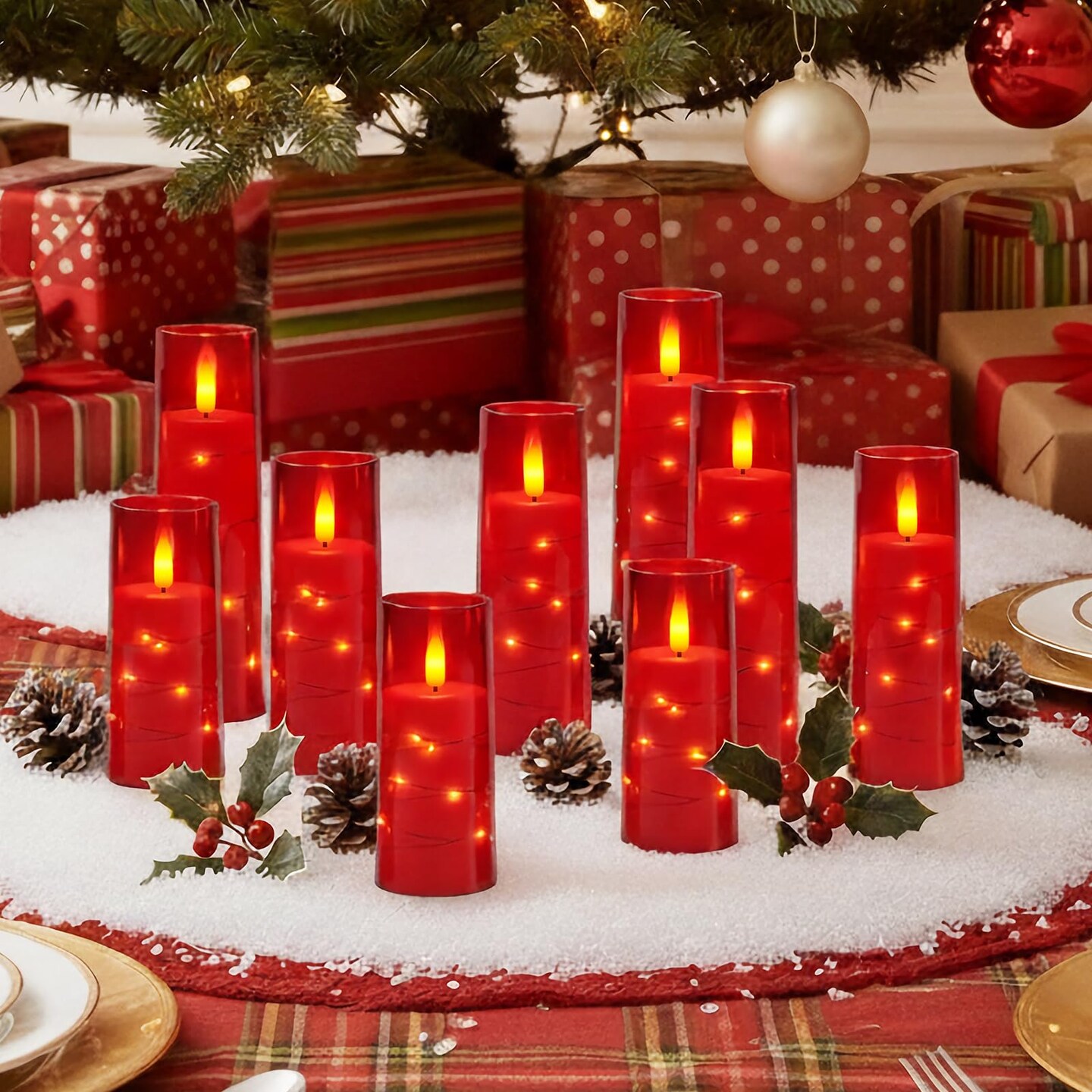 Flameless Candle with Remote Timer – 9 Flickering Acrylic Battery Operated LED Pillar Candles with Embedded Star String for Valentine's Day, Home Decor, and as a Gift (Red)
