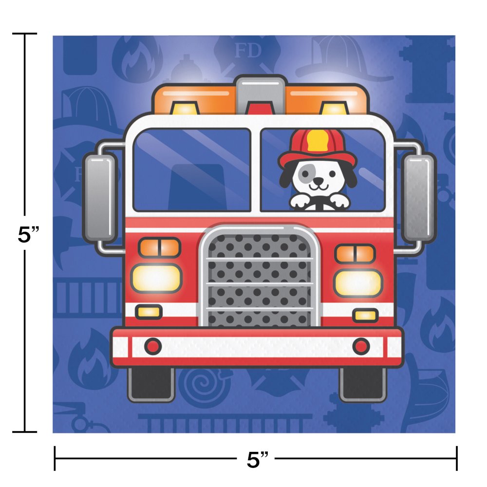 Flaming Fire Truck Fire Trucks Beverage Napkins - 16ct