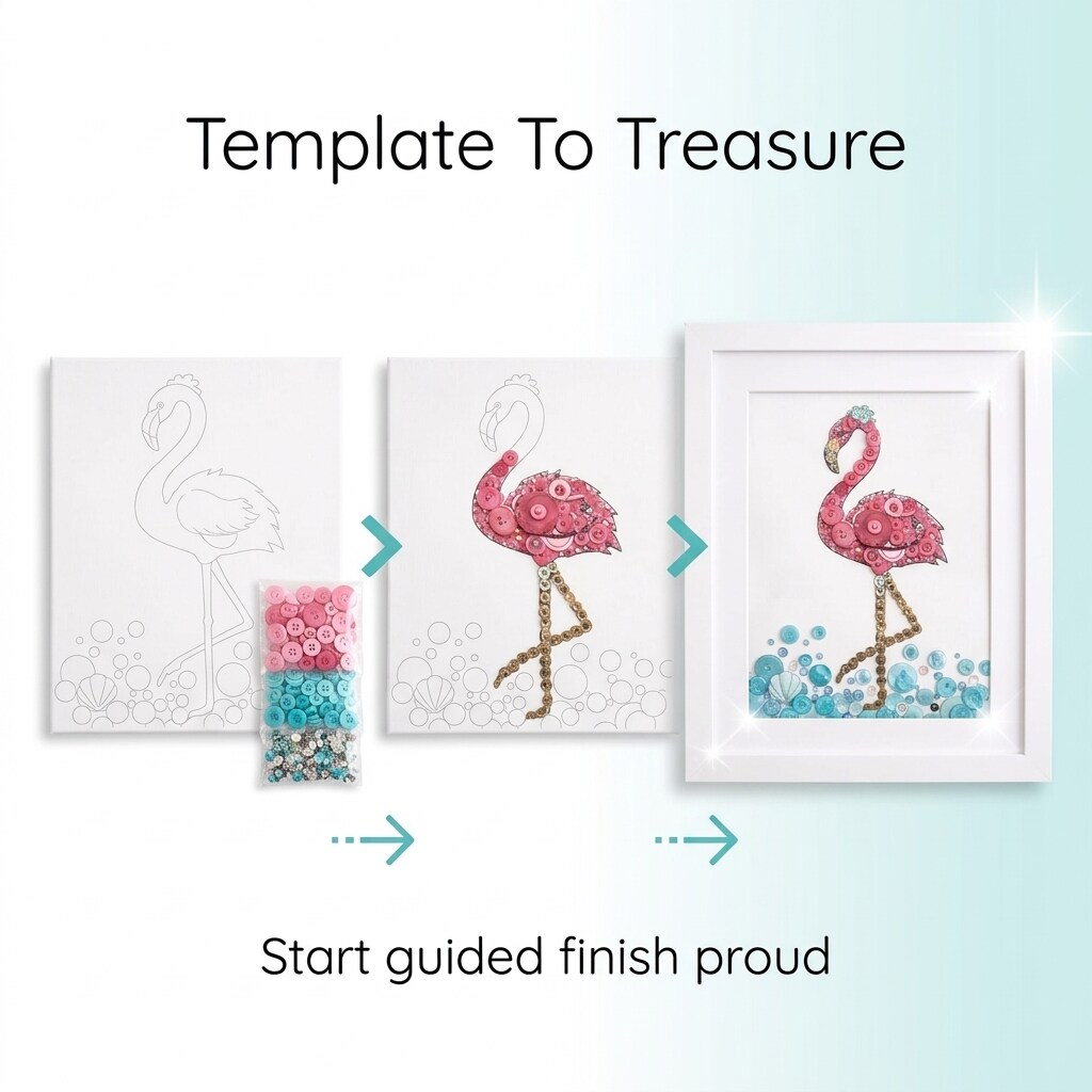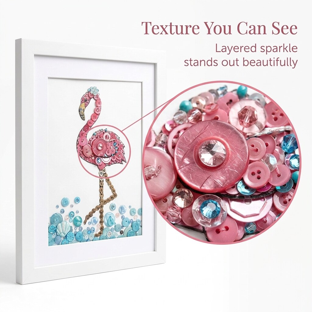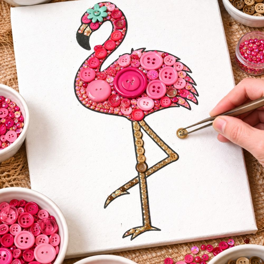 Flamingo Embellishment Bundle – Pink Buttons, Turquoise Accents, Crystals, Gems & Sequins – DIY Craft Kit for 8x10 Canvas Art