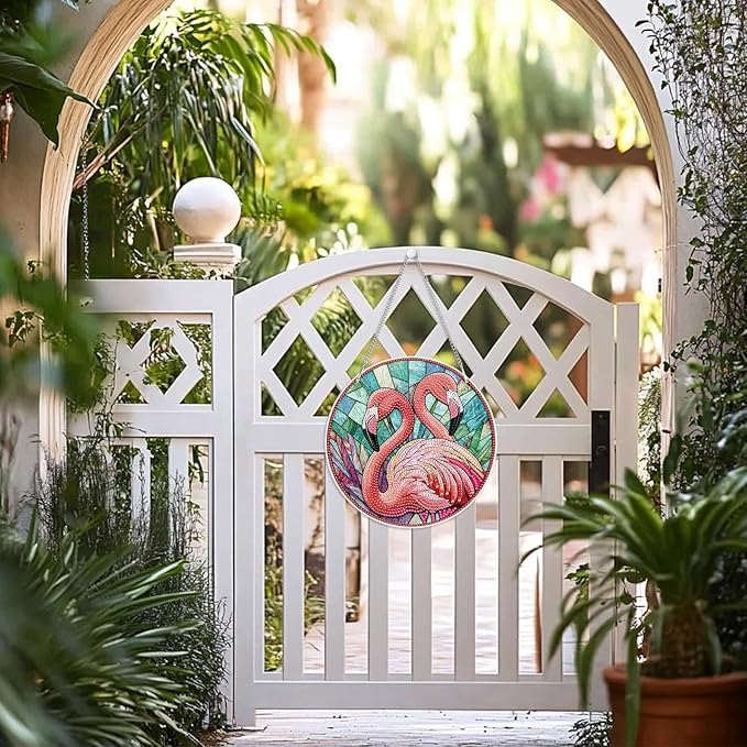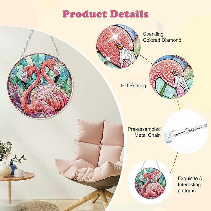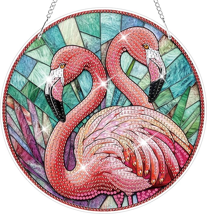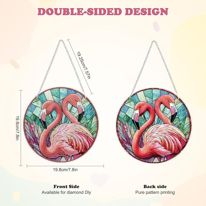 Flamingo Hanging Diamond Art Kits for Adults, Special Shaped Crystal Diamond Painting Ornament Kit, DIY Double-Sided Pattern Window Pendant Gem Art Kit for Home Wall Decor 8.3x8.3inch