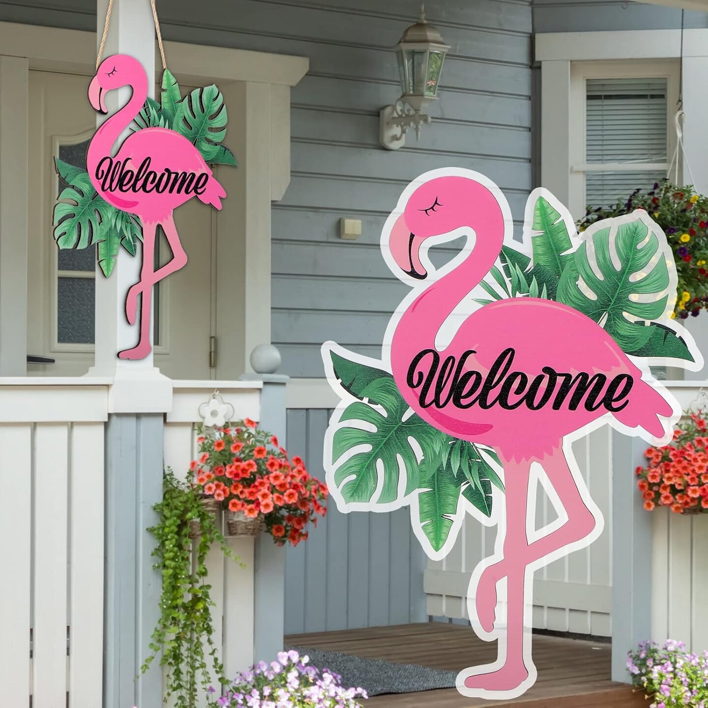 Flamingo Welcome Wood Door Summer Sign Large Hawaiian Decorations Hawaiian Themed Wall Art Hanging Sign
