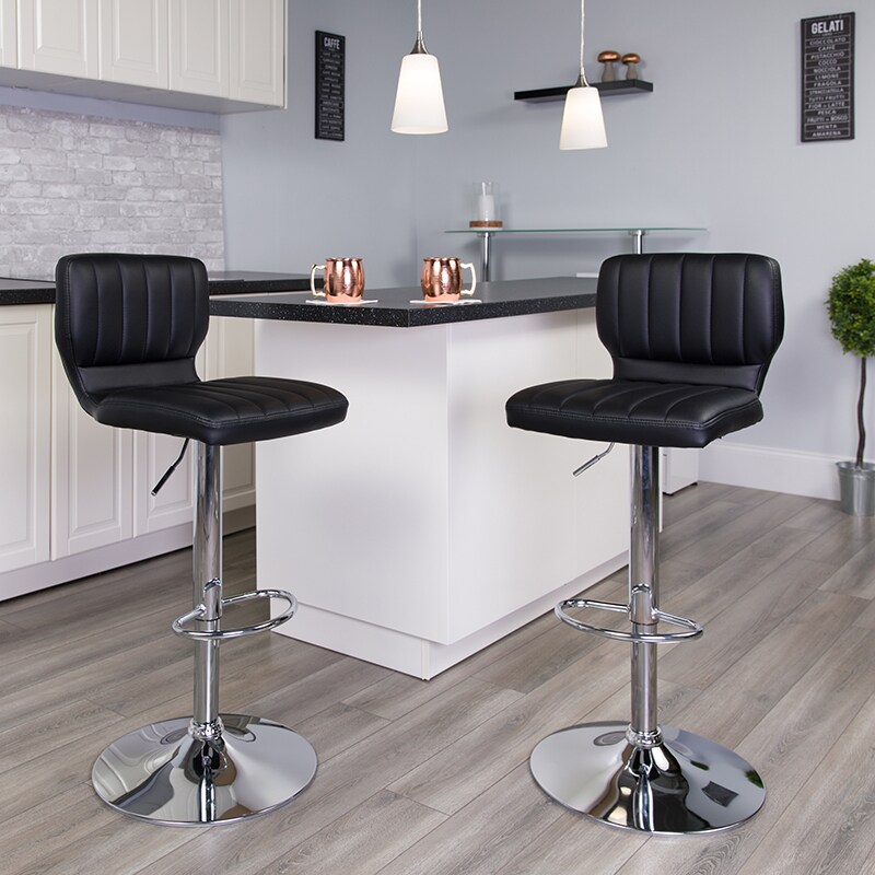 Flash Furniture Contemporary Black Vinyl Adjustable Height Barstool with Vertical Stitch Back and Chrome Base CH-132330-BK-GG