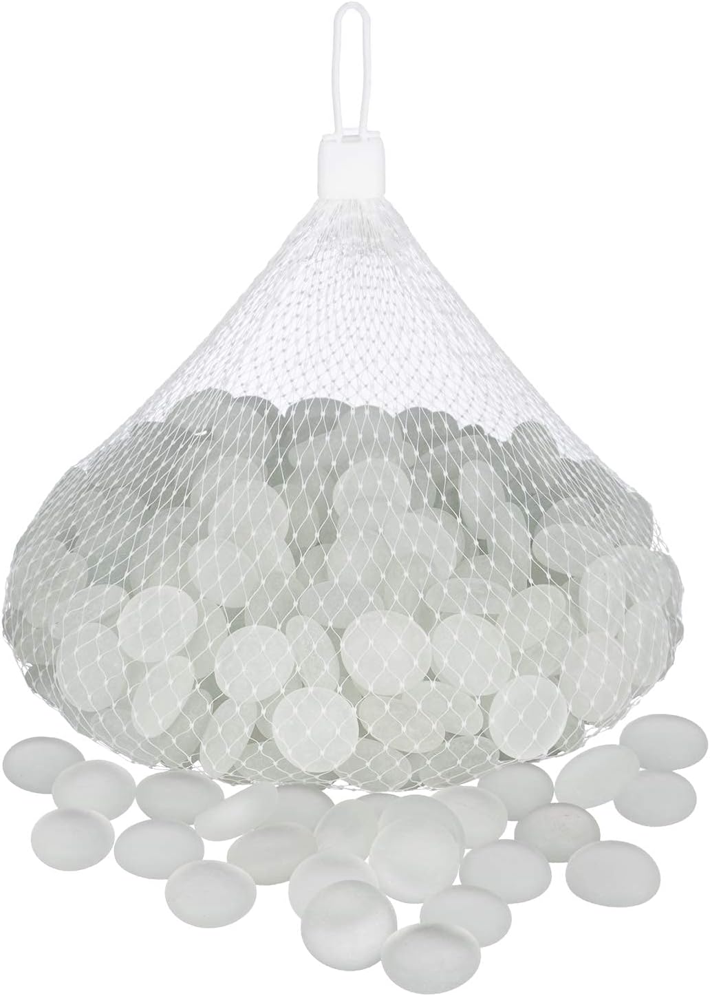 Flat Marbles Vase Filler - 0.68 Lb (70 pcs) Frosted White Glass Pebble Vase - Clear Glass Stones for Vases - Flat Glass Marble for craft and Home décor - Aquarium Glass Marble filler