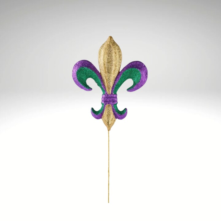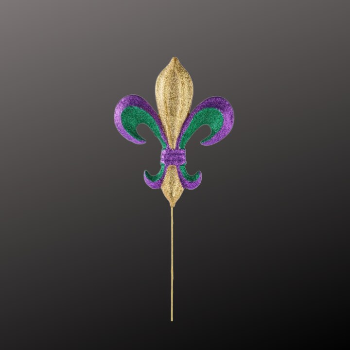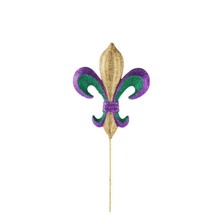 Fleur De Lis Mardi Gras Pick – 10" Purple Green Gold Glittered Decor for Wreaths-MZ1798TC