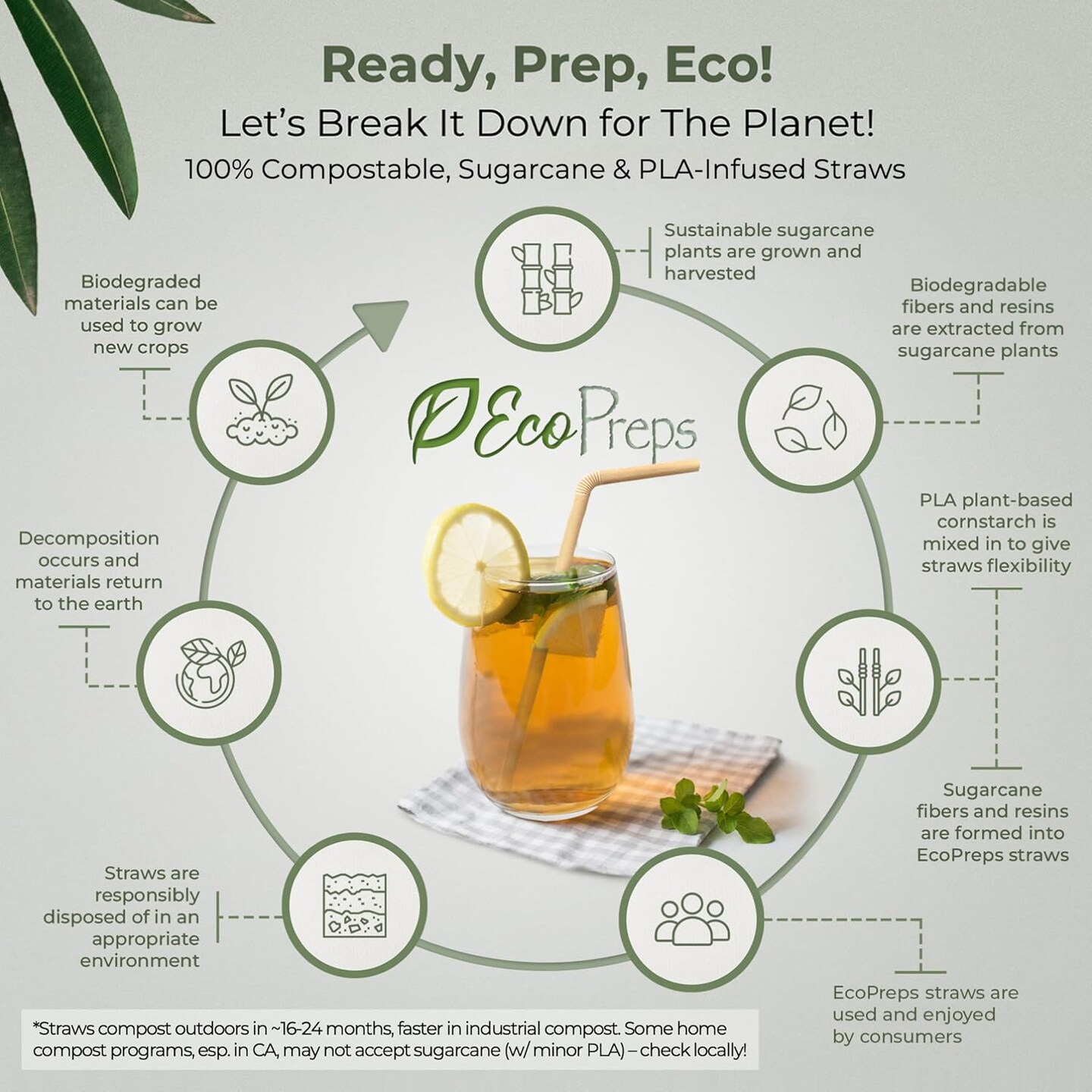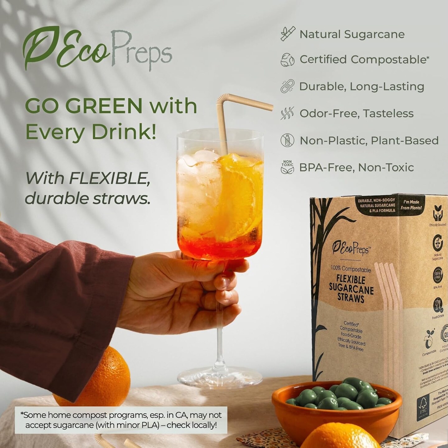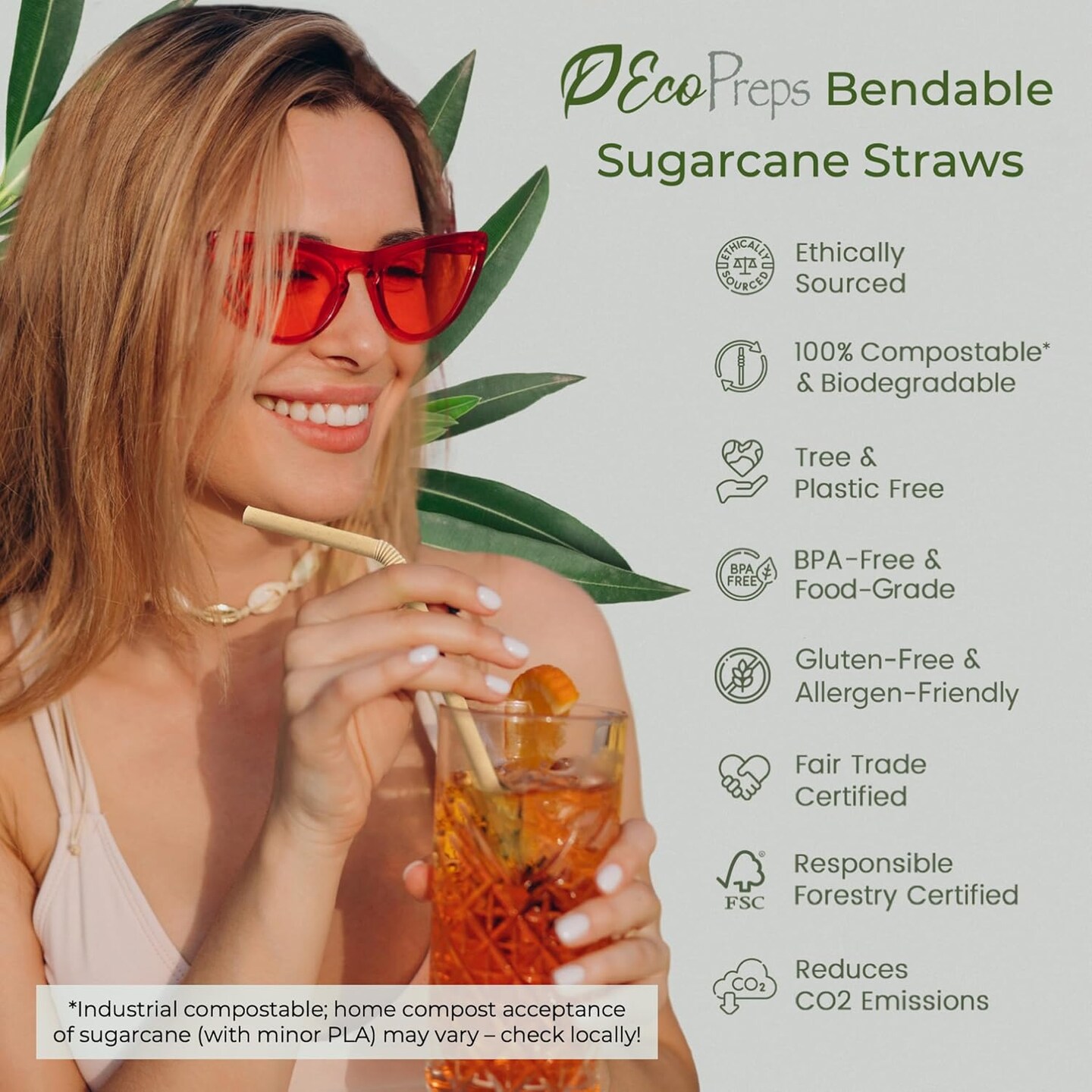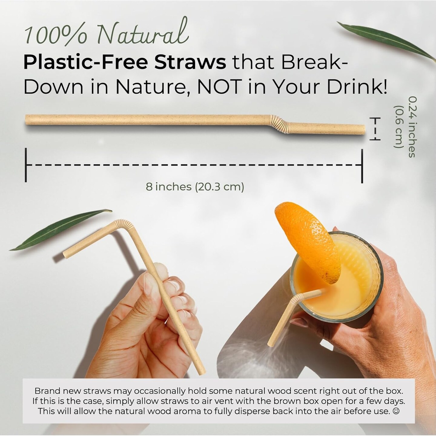 Flexible Biodegradable Sugarcane Straws, 300 Count | 100% Compostable, Plastic-Free, Eco-Friendly Drinking Straws for Cold Drinks | 7.8'' Bendable, Disposable Sugarcane Fiber Straw (300 PCS)