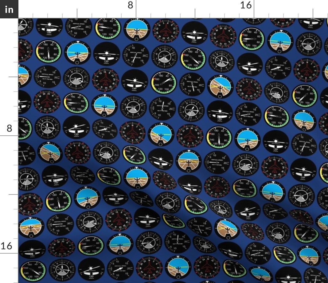 Flight Deck Navy Aviation Pilot Airplane Plane Instrument Flying Blue Fly Custom Printed Fabric by Spoonflower Various Fabrics by the Yard or Fat Quarter