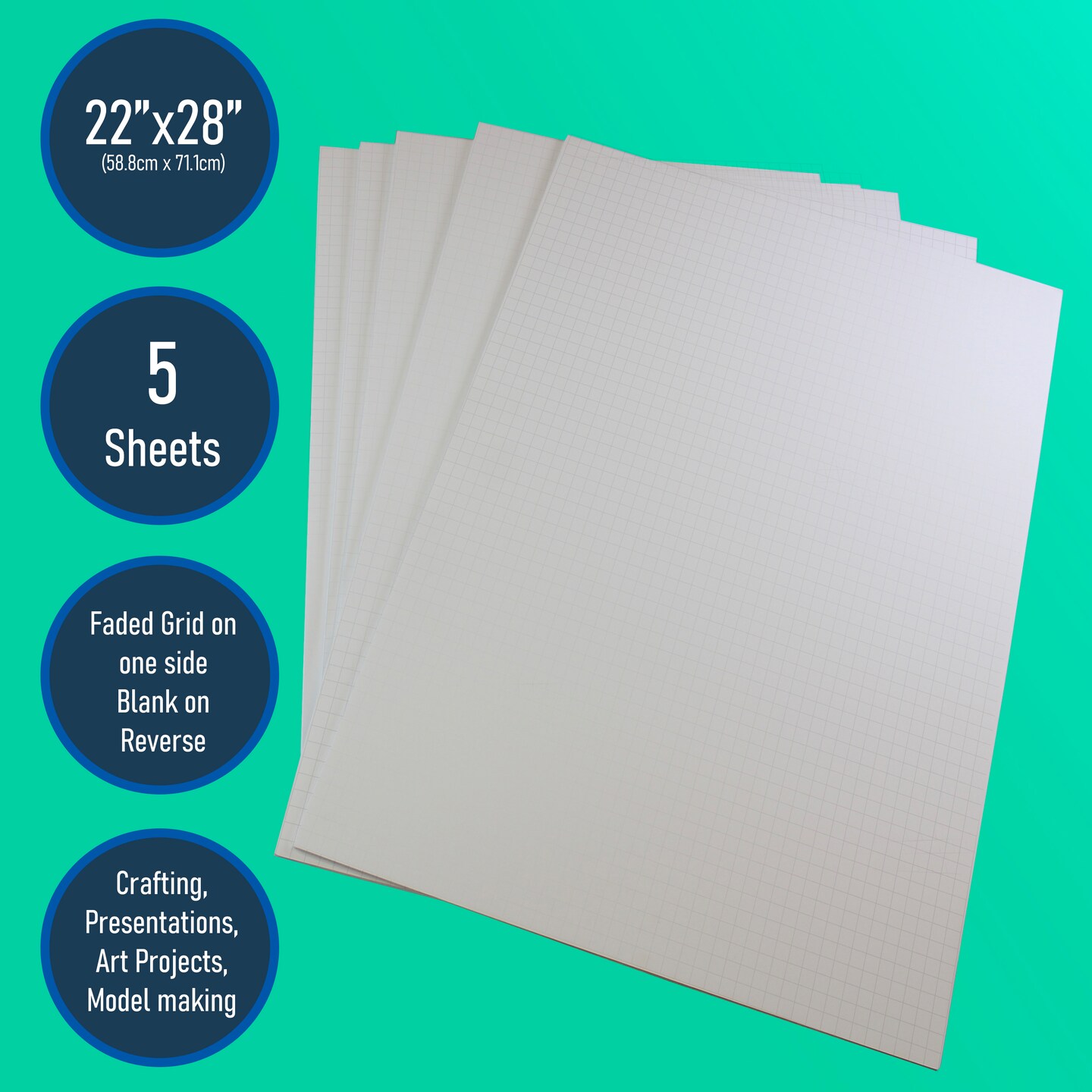 Flipside Products (11" x 14" or 20" x 28") Fade-Line White Poster Foam Board, 1/2" Subtle Grid Lines for Alignment & Visual Layouts, Arts, and Crafts, Pack of 5