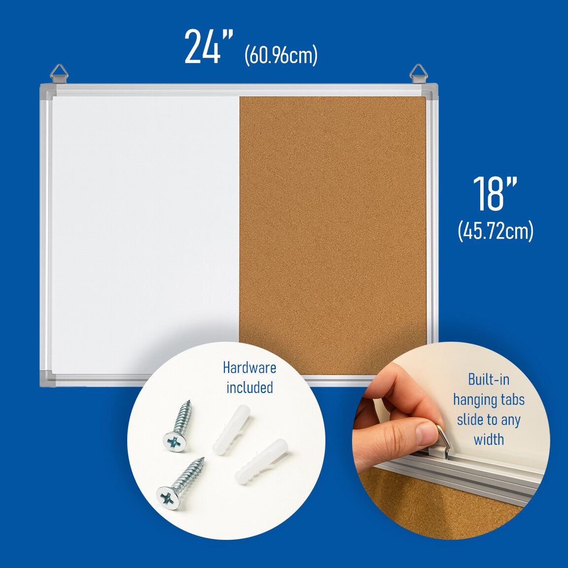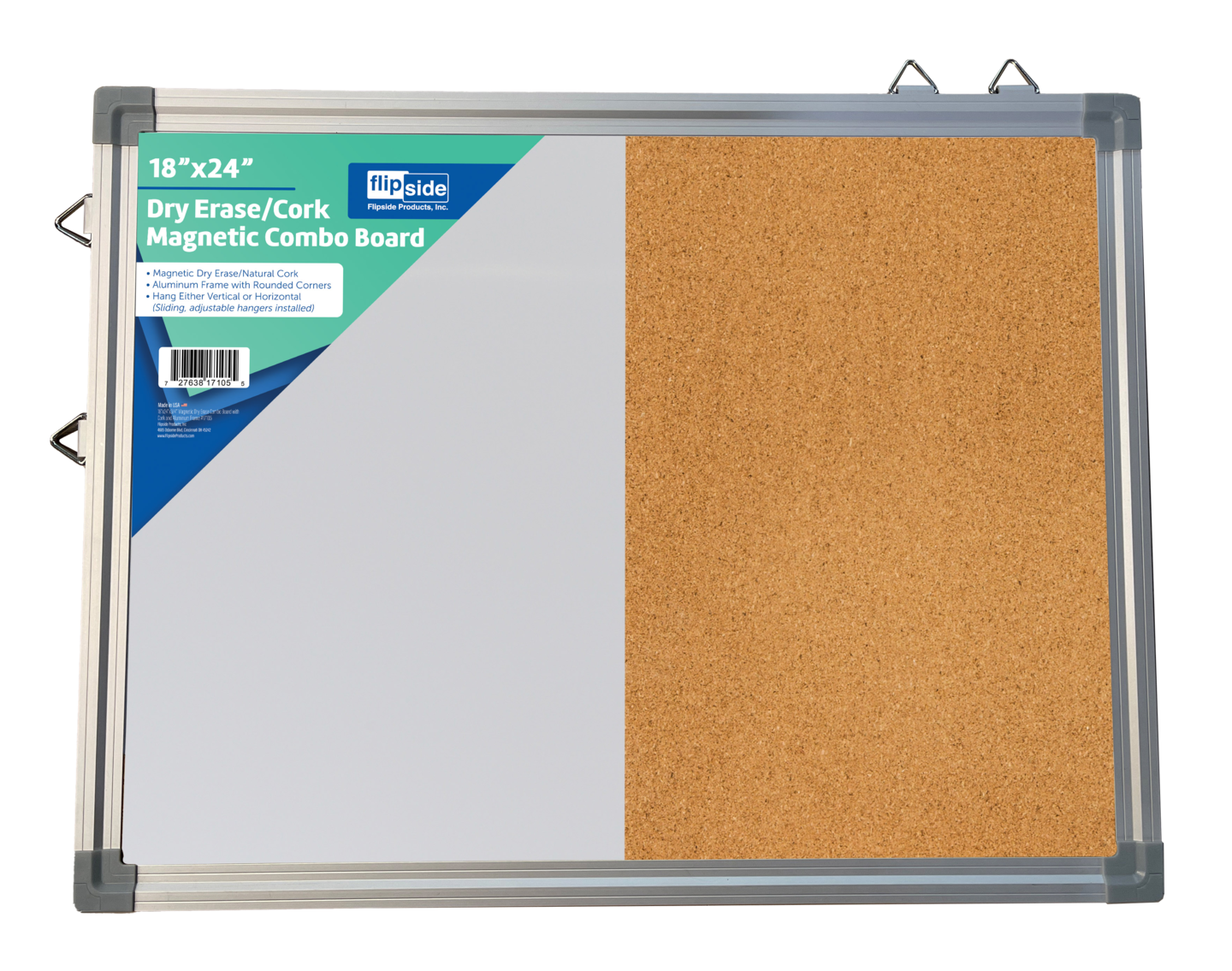 Flipside Products 18" x 24" Combo Cork/Dry Erase, Aluminum Framed Board, Half Cork, Half Magnetic Dry Erase, Whiteboard, Bulletin Board, Office Wall
