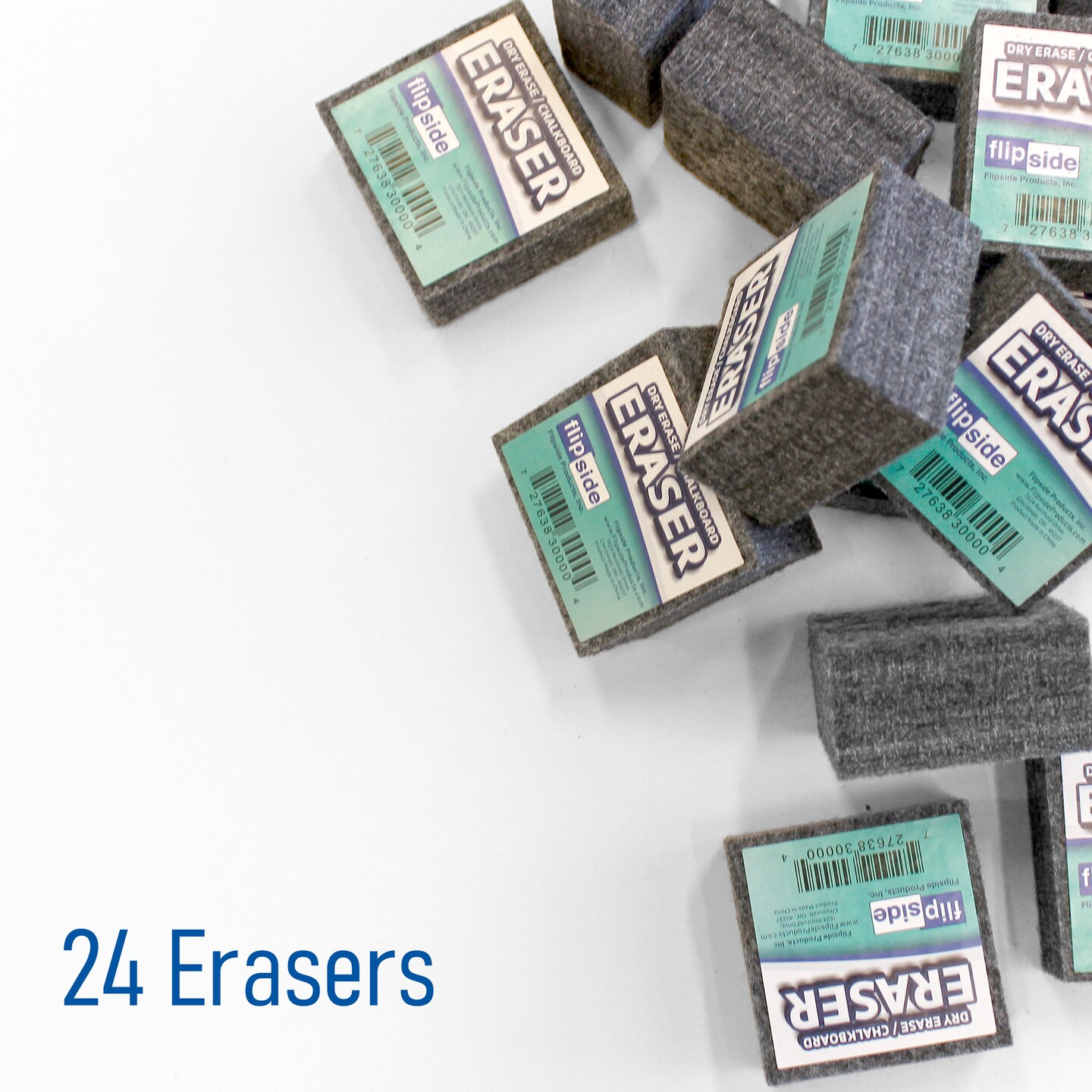 Flipside Products 2" x 2" Student Erasers For Chalkboard And Dry Erase Board, Small Erasers, Felt, Blackboard, Whiteboard, Classroom Cleaning