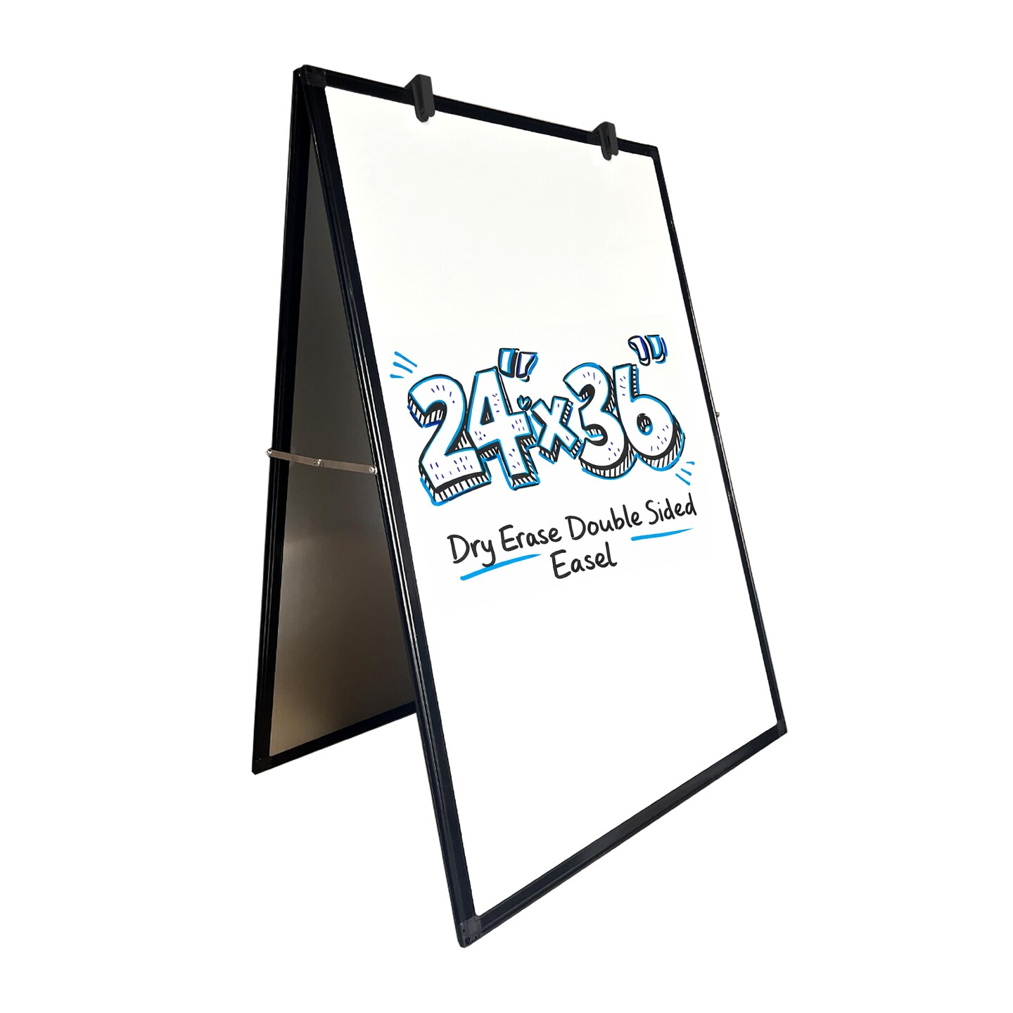 Flipside Products 24" x 36" Double-sided Magnetic Dry Erase Black Aluminum Marquee Easel, Store Sign, Office, Flipchart hooks, Portable