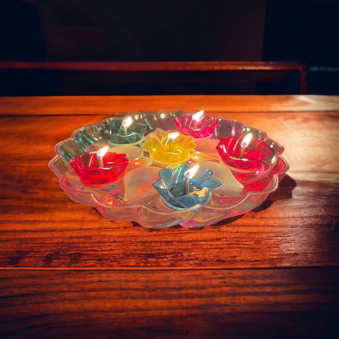 Floating Rangoli Diya Deepawali Oil Lamp Traditional Colourful Diyas with Wicks Batti Diwali Home Temple Decor Shadow Reflective Diyas - Christmas Thanksgiving Housewarming Return Gift