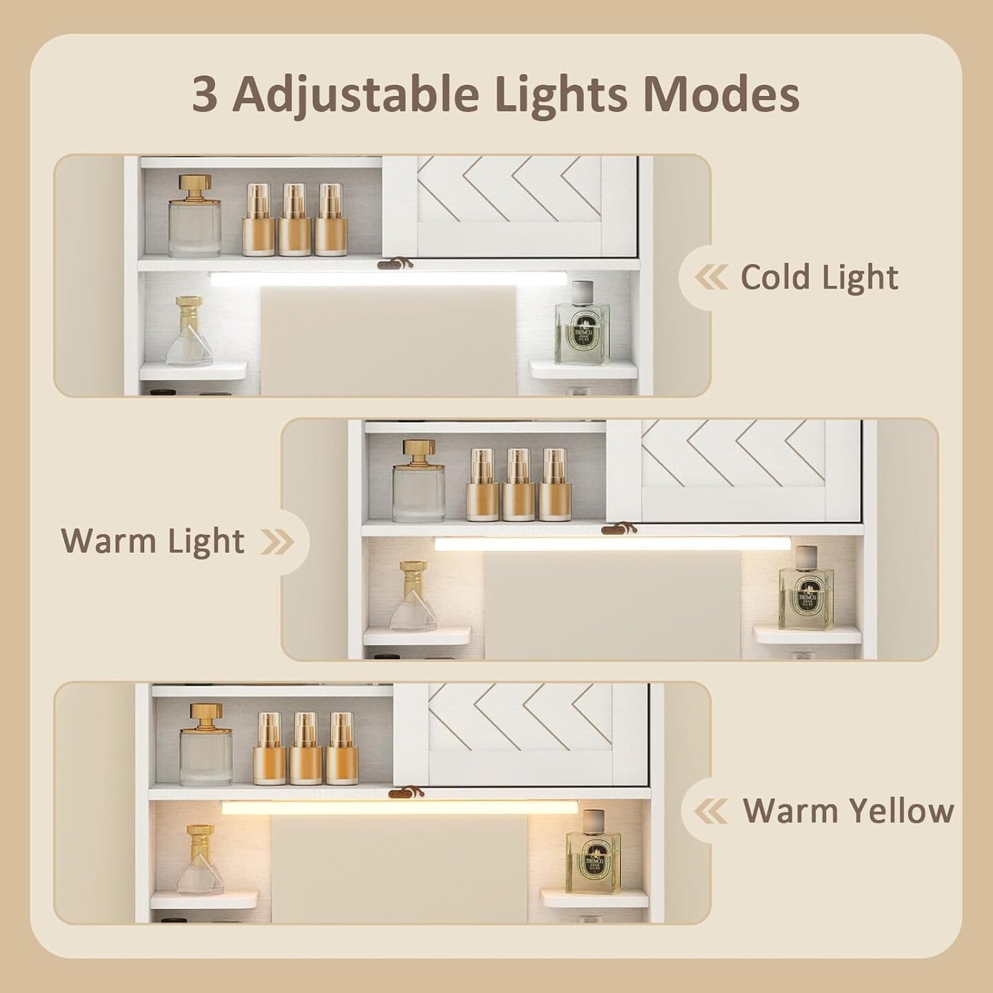Floating Vanity Desk with Mirror and Lights Small Wall Mounted Makeup Set with Storage White Farmhouse Dressing Table for Tiny