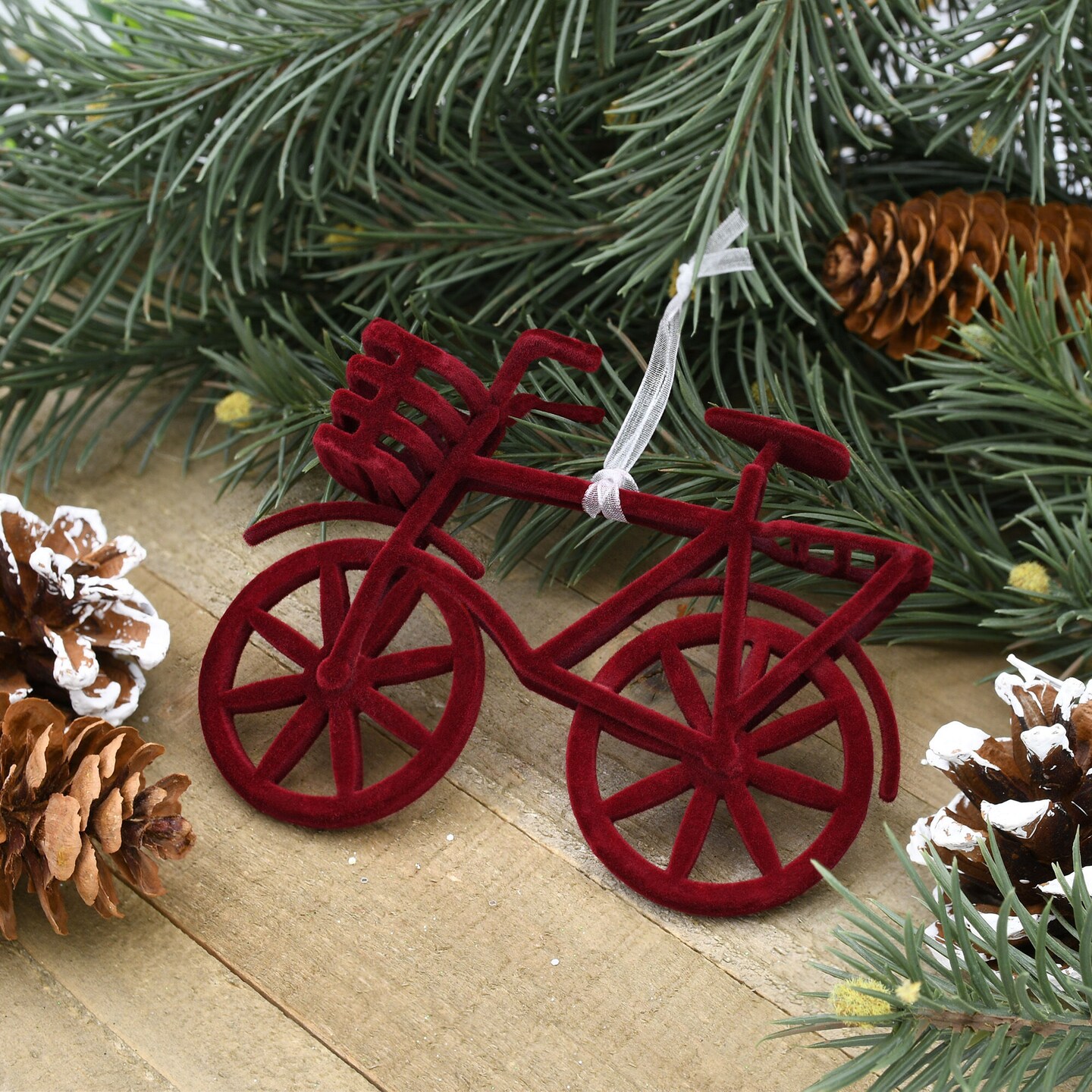 Flocked Red Bicycle Ornament