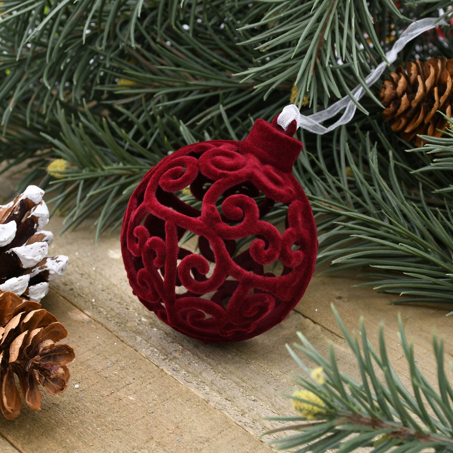 Flocked Red Christmas Ball Ornamet